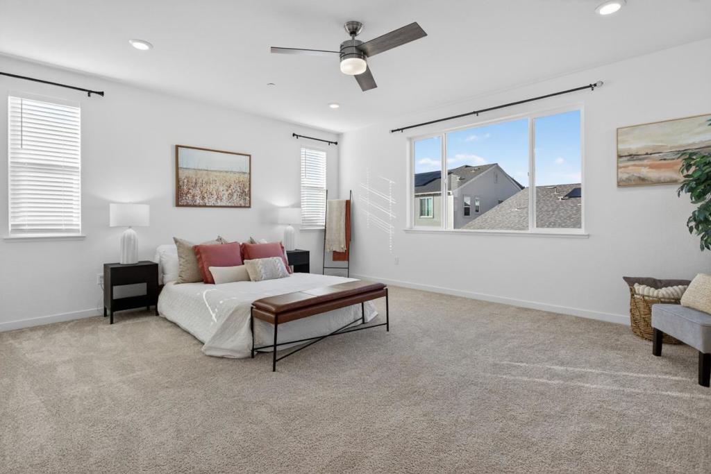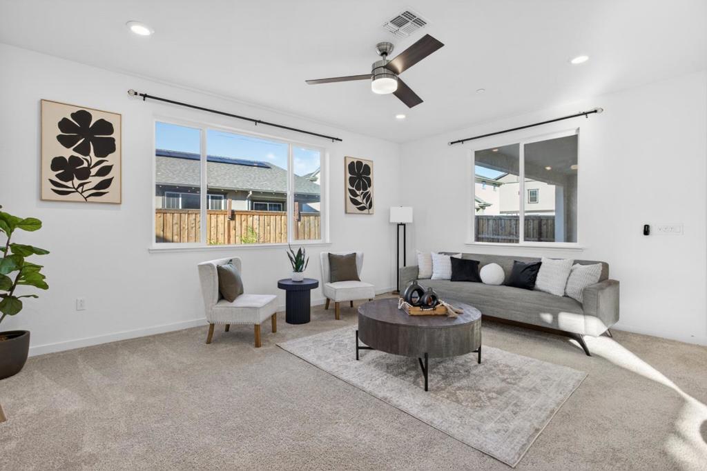 Welcome to 17533 Pegasus Ct, a beautifully cared-for home tucked away on a quiet court in the River Islands community. Designed with flexibility in mind, the main level features open-concept living and dining areas, a modern kitchen with ample cabinetry, and a desirable downstairs guest suite with an attached officeideal for multigenerational living, guests, or work-from-home needs. Upstairs offers bedrooms, a spacious private primary suite with walk-in closet and dual-sink bath, a versatile loft perfect for a playroom or family room. The landscaped yard includes established fruit trees and low-maintenance outdoor space. Additional highlights include owned solar, an attached garage, and energy-efficient features. Located in an established, welcoming neighborhood near parks, trails, schools, and commuter routes. Move-in ready.