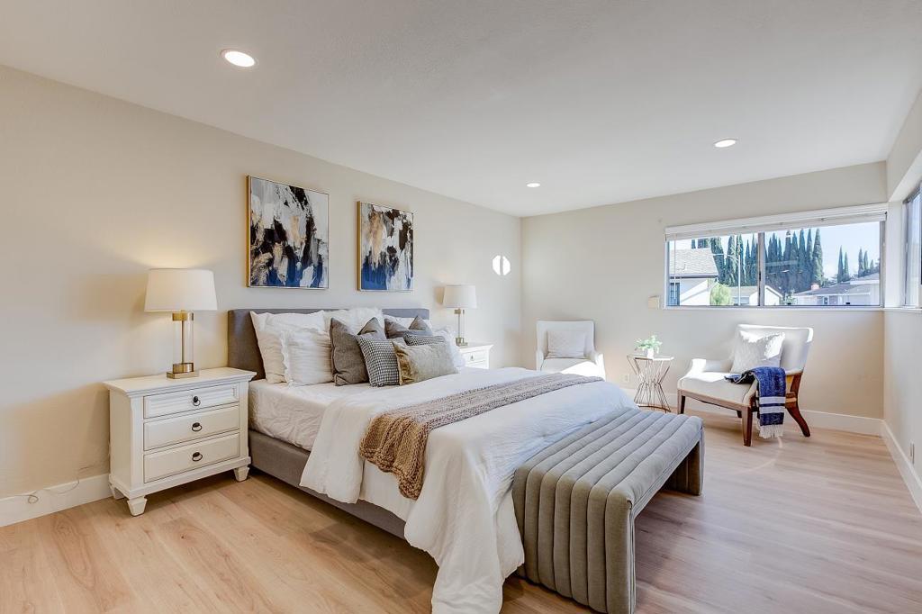 Beautiful 4-Bedroom, 2.5-Bath Retreat in a Peaceful Neighborhood. This stunning home blends timeless elegance with modern comfort and everyday functionality. Abundant large windows and fresh flooring throughout create a warm, inviting ambiance filled with natural light. The thoughtfully designed floor plan features a spacious living room, a dedicated dining area, and a step-down family room that opens directly to the backyardperfect for entertaining and daily living. The chefs kitchen is a true highlight, showcasing high-end finishes, quartz countertops, custom cabinetry, and stainless-steel appliances, making it the centerpiece for family gatherings and everyday meals. All bedrooms and bathrooms are beautifully updated, refreshed just over two years ago. The primary suite offers a charming dressing nook and ample space for a study area, workspace, or cozy relaxation corner. The finished two-car garage features epoxy flooring and provides excellent flexibility for parking, storage or even a home gym. Ideally located just minutes from schools, Santa Teresa County Park, scenic trails, and the golf club, with convenient access to shopping, dining and major freeways. This move-in-ready home is waiting for its next family to create lasting memories.