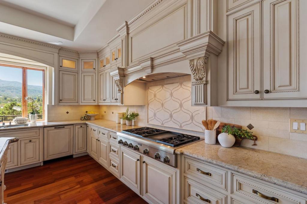 Custom-built Mediterranean-inspired estate offering panoramic Monte Bello views from nearly every level. Tucked away on a quiet cul-de-sac, this 5,693 sq ft residence blends timeless architectural character with modern luxury. The home opens through a serene entry framed by colorful garden beds, mature greenery, and a tranquil water feature. An expansive family room and chefs kitchenequipped with Thermador appliances and RO filtrationflow seamlessly to oversized view decks, creating an ideal indoor/outdoor living experience. Thoughtfully designed for wellness and multi-generational living, the main level features three en-suite bedrooms, while the lower level offers two additional bedrooms, a family/media room with acoustic wall treatments, direct access to a large patio, office/gym flex space and sun room. Eco-conscious amenities include owned solar panels, dual EV chargers, soft-water and carbon filtration systems, a whole-home HRV for continuous fresh air, interior fire sprinklers, and full indoor/outdoor surround sound. Incredible views, exceptional privacy, and just minutes to downtown Los Altos, top-rated schools, and convenient I-280 access. A rare combination of scale, privacy, and views in Los Altos.