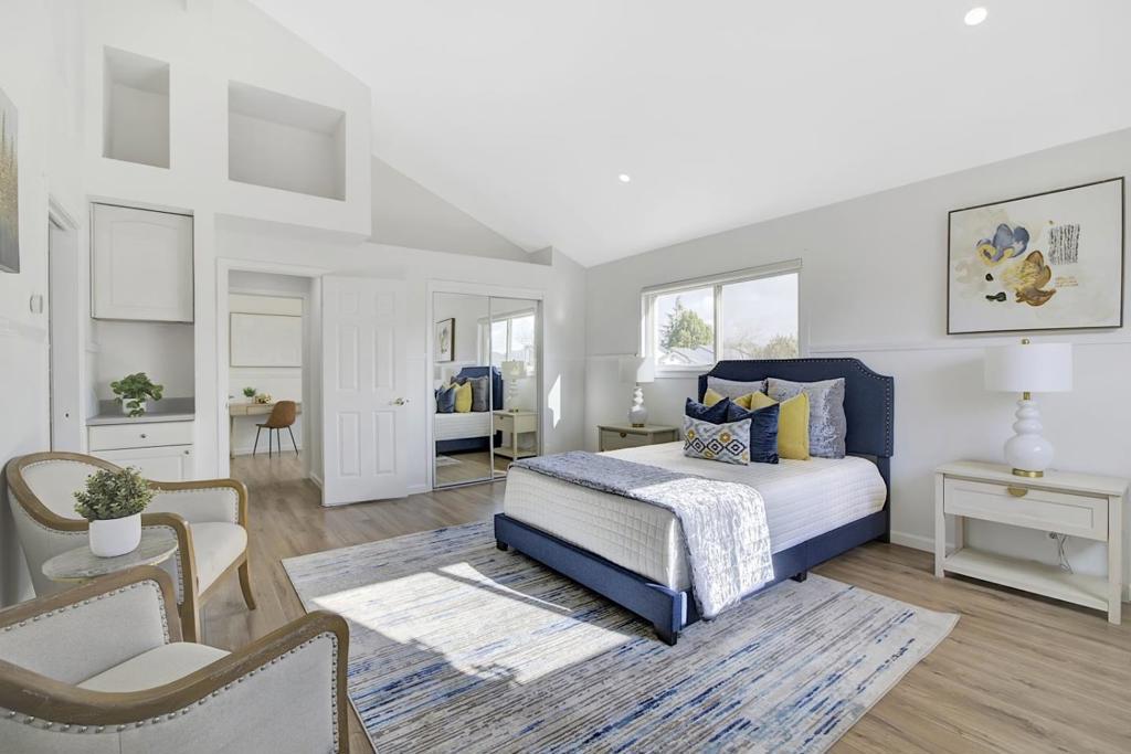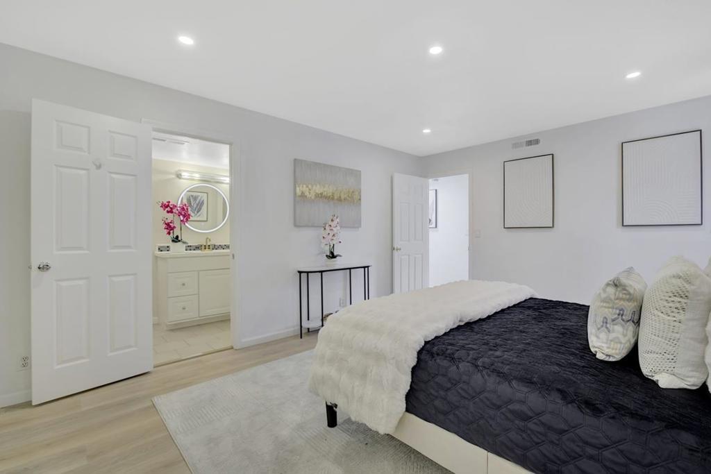 Remodeled light and bright 5 bedroom home with primary suits on top & bottom floor AND a separate office space. Beautifully updated stone exterior over t a private sunny courtyard with enchanting swing. The formal living space with double high ceilings is graced with a cozy fireplace. The home has been freshly painted, with new blonde LVP flooring g. The sparkling chef's kitchen is open to the dining area and den, featuring newer appliances & a huge island, and abundance of windows letting light into every corner. The downstairs Primary features a Jack and Jill bathroom and is tucked away with a view of the big backyard with abundant fruit trees including avocado, apple, peach, & lime. One more bathroom graces the downstairs making this level perfect for au pair or multi generational living and work from home. Up the sweeping staircase are 3 more bedrooms, including a VAST primary suite with a luxury bath with a separate shower and soaking, double sinks, and a walk-in closet. The backyard is full of sunshine and features a deck for entertaining, as well as lots of space for play and relaxation . A 5 min walk to Martial Cottle Park and 10 min walk to Safeway and Snell & Branham Plaza. A short distance to the 101, 87 and 85 freeways makes this a flexible commute spot.