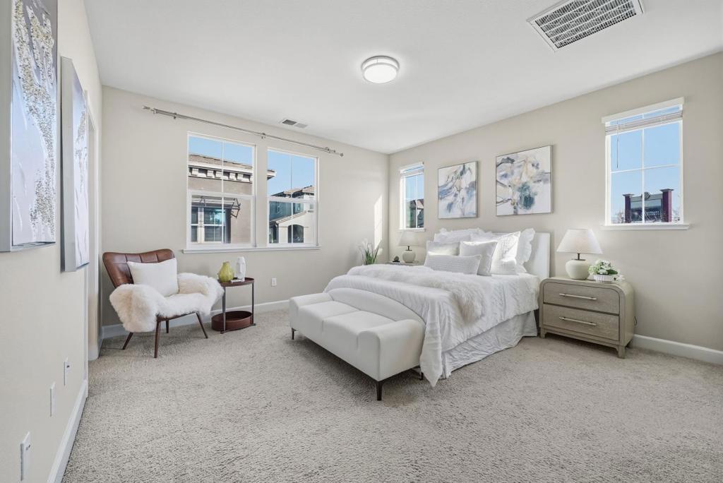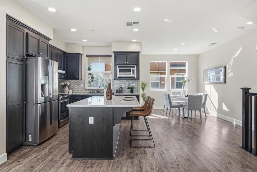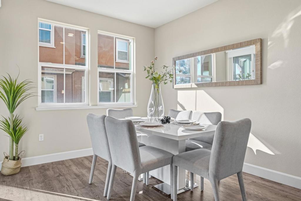 Welcome to this spacious 3-bedroom, 3.5-bath corner-unit, offering abundant morning sunlight, 3-sides windows provide a bright, airy ambiance. Conveniently located just minutes away from Costco, NewPark Mall, I-880, Dumbarton Bridge and more. Built by D.R. Horton, the thoughtfully designed layout in the Prima gated community includes main-level suite, ideal for a home office or guest room & 2 suites on the upper level. Enjoy an upgraded kitchen with modern finishes, perfect for everyday living and entertaining. 2-car side-by-side garage. This move-in-ready home combines comfort, functionality and an unbeatable location.