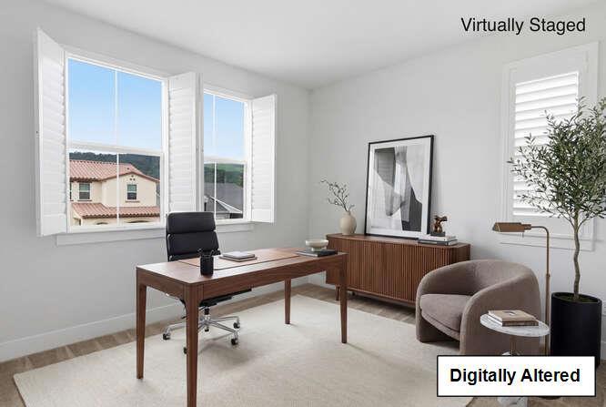 Stunning Edenbridge home in Copperleaf! This 5BD/3BA beauty offers approx. 2,906+ s.f. with dual-zone HVAC, luxury vinyl flooring & plantation shutters throughout. A major plus is the owned solar system with battery backup - enjoy virtually NO electric bills! Light-filled open layout with spacious family room w/gas fireplace, dining area & a chefs kitchen featuring quartz counters, stainless steel appliances, double ovens, 5-burner gas cooktop, oversized island w/sink & dishwasher, & walk-in pantry. Flexible floor plan includes a downstairs bedroom & full bath. Upstairs boasts a luxurious primary suite with private retreat, walk-in closet, soaking tub & separate shower, plus a convenient laundry room w/washer & dryer. 3 additional bedrooms, shared bath & a huge loft complete the upper level. Oversized premium end lot with no neighbors on 3 sides, adjacent to the community park & views of rolling hills. Beautifully landscaped with rose garden, many fruit trees, lush lawn, oversized patio & storage shed. 3-car tandem garage, w/diamond plate cabinets, water softener, EV pre-wire, extra wide driveway with room for toys, possible pool or ADU. Close to downtown & Hwy 101. A truly exceptional place to call home. The only thing missing is YOU! *Select images include virtual staging*