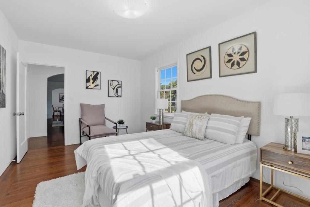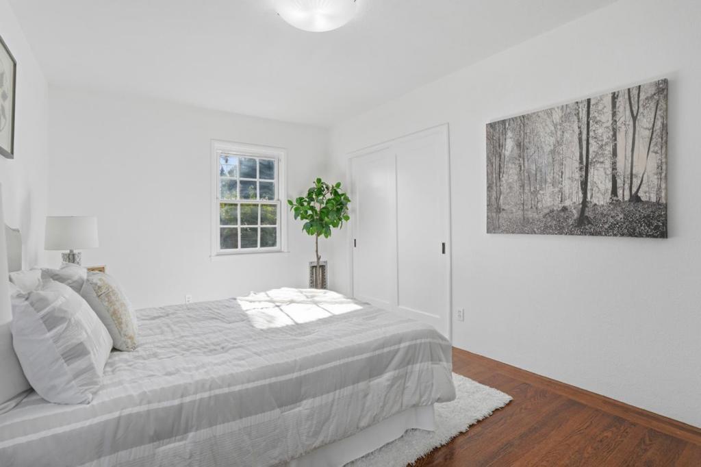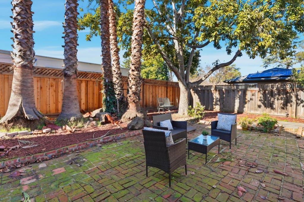 Tucked away on the west side of Hwy 101, this inviting home immediately draws you in with its curb appeal and welcoming front path. Step inside to a bright, comfortable living room where hardwood floors and a cozy fireplace create a space that feels easy to settle into. The room flows effortlessly through an arched opening into the dining area, ideal for both quiet weeknights and casual get-togethers. The galley kitchen is practical and efficient, offering generous cabinet and counter space on both sides, plus a large window over the double stainless-steel sink that fills the space with natural light. Down the hall, the bedrooms are well sized and thoughtfully laid out, with a tiled bathroom featuring a shower-over-tub and space for stackable laundry. A standout feature is the bonus room at the back of the homeperfect for relaxing, working from home, or entertainingwith large windows and sliding doors opening to the backyard. Mature trees provide shade and privacy, creating a peaceful outdoor setting. A detached two-car garage adds valuable storage. Located on the west side of 101, just steps from the Menlo Park border, this home sits in a quiet, family-friendly neighborhood with a prime Peninsula location, close to Hwy 101, Willow Rd, shops, dining, and downtown Palo Alto.