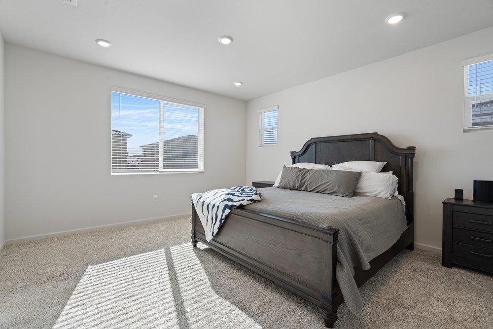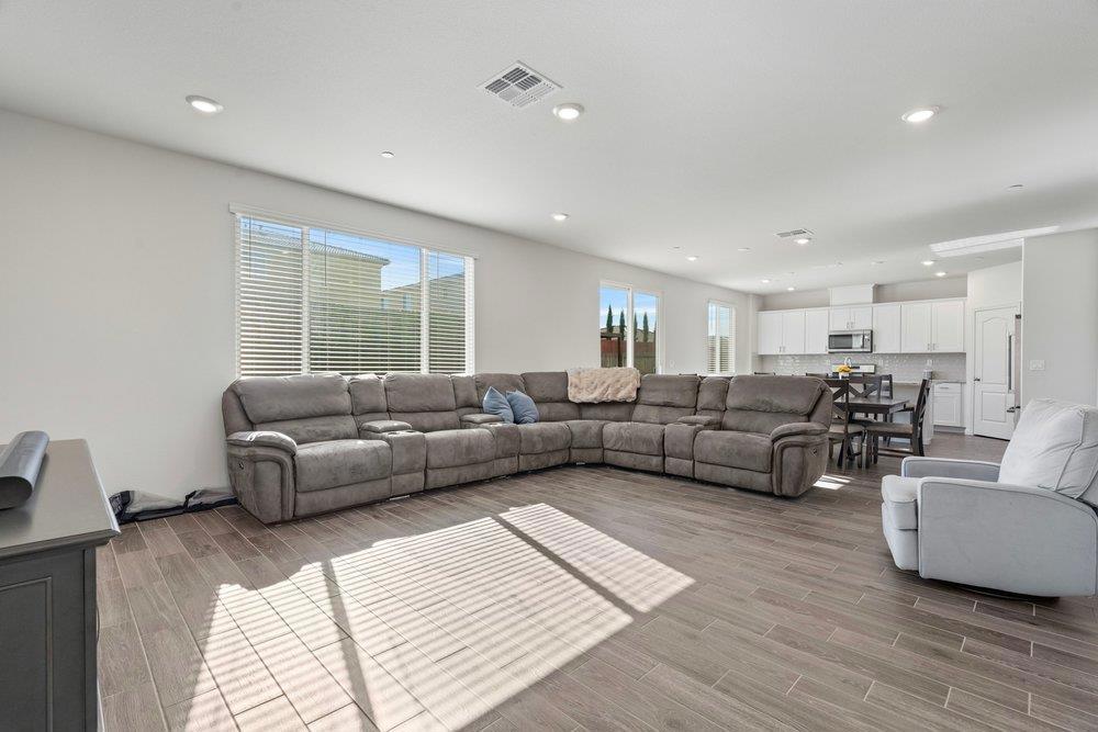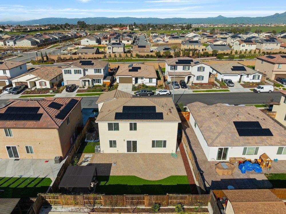 Looking for a newer home with a fully finished backyard and window coverings already installed? 2031 Wildflower Drive has over $50,000 in landscaping upgrades! The two story home has 4 bedrooms plus a loft with ample space to call home. The kitchen has white cabinets, granite countertops, pantry, tile backsplash, island with sink, and breakfast bar. The kitchen opens to the dining area and great room. The ground floor has a bedroom and full bathroom that is great for houseguests or multi generation living. Upstairs has three bedrooms plus a loft and additional built in study/office area. The laundry room is located upstairs with built in cabinetry. The primary suite has sunken tub, shower stall, double sinks, and huge walk-in closet. The fully landscaped backyard has turf, concrete, pavers, planters, irrigation system, and gazebo. A private oasis! Two car garage with driveway side extension for more cars or larger vehicles. Solar system is owned with 4.20 kW system and currently in NEM 2.