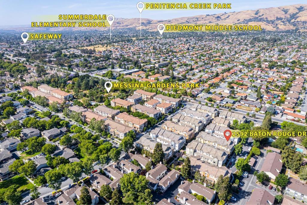 *East-facing and beautifully positioned, this captivating bright and quiet end-unit townhouse style home offers abundant natural light and an airy, comfortable living environment. The highly desirable open-concept main level features a spacious living and dining area paired with a convenient powder room, creating an ideal setting for both daily living and entertaining. Upgraded flooring throughout enhances the contemporary appeal. *The modern kitchen is thoughtfully updated with sleek new countertops, stainless steel appliances, and plentiful cabinetry for storage and organization. Enjoy everyday convenience with in-house laundry and year-round comfort with central AC and heating. The inviting primary suite features a walk-in closet and a marble-accented dual-sink bath. Additional highlights include an attached two-car garage. *Residents enjoy access to a welcoming community with parks, playgrounds, and scenic greenbeltsplus one of the lowest HOA dues in the area. The location is exceptional: near Summerdale Elem School (rated 8/10 for test scores on GreatSchools), close to retail, dining, and everyday essentials, within walking distance to VTA Light Rail, and offering easy access to major tech employers including Nvidia, Google, Apple, and Supermicro.