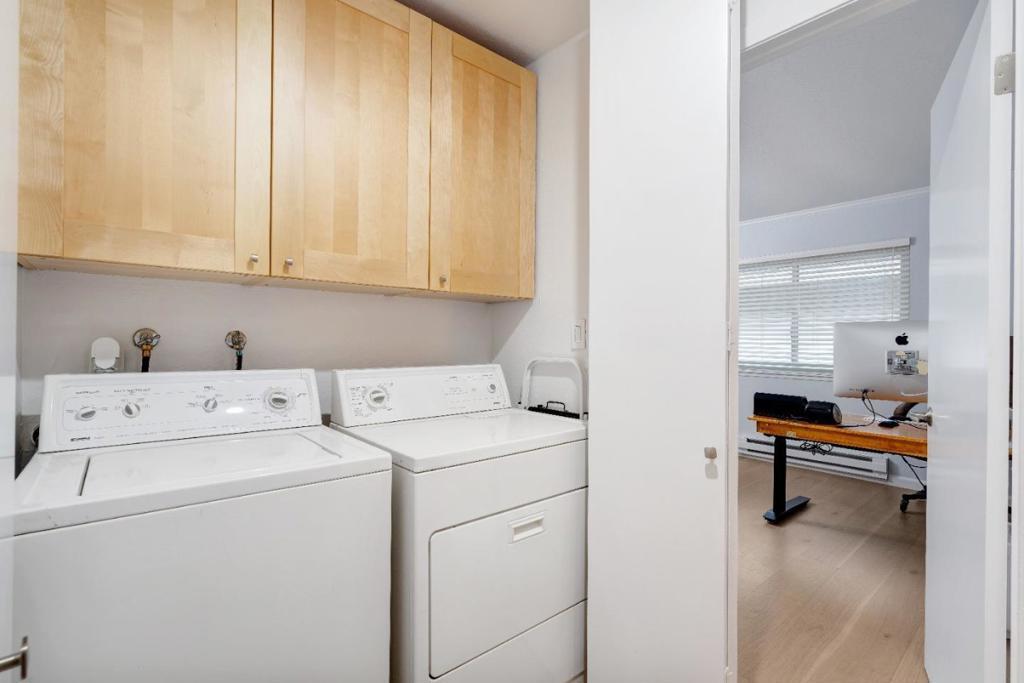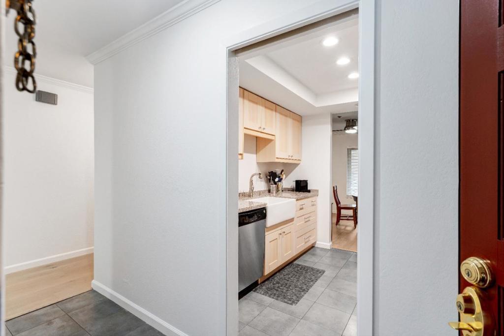 Enjoy stylish living at this rarely available building with only 9 condominiums just 3 short blocks from the Village. Top floor location and beautifully remodeled throughout with engineered wood or tile floors in every room. Large living/dining room combo with gas-log fireplace, private deck, wet bar, and wiring for surround sound. Remodeled kitchen with granite counters and stainless steel appliances. Lovely primary suite with customized wardrobe storage. Both bathrooms are luxuriously remodeled with contemporary designer style. Numerous smart home technology features for comfort and convenience. Concealed laundry, garage parking for 1, updated electrical can accommodate a backup generator. Wall unit air conditioning. Community pool. Great for starting out, moving up, or downsizing. Excellent Los Altos schools.