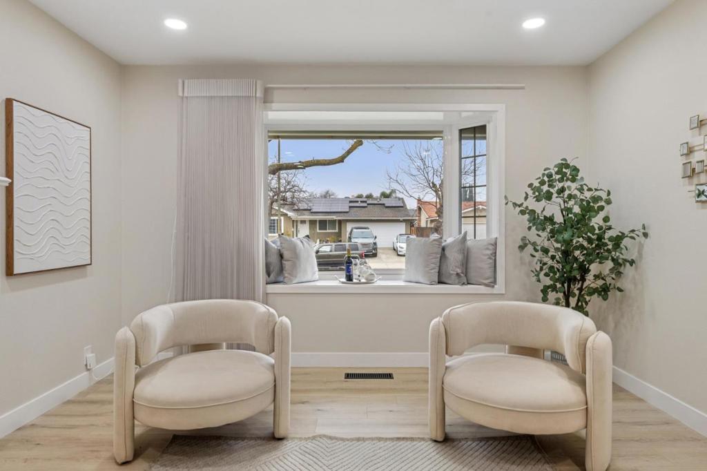 Welcome to this beautifully updated 3-bedroom, 2-bath home offering 1,844 sq ft of light-filled living space, ideally situated on a desirable corner lot in the heart of Blossom Valley, San Jose. This home has been freshly painted inside and out and features elegantly remodeled bathrooms with contemporary finishes, new recessed lighting, new flooring and electrical window coverings, creating a clean, modern, and bright interior throughout. The open living and dining areas flow seamlessly, offering a welcoming space for everyday living and entertaining. Set on a 7,519 sq ft lot, the property offers a private backyard, mountain views, and excellent outdoor potential. Additional highlights include solar, enhancing energy efficiency and long-term savings. Conveniently located close to shopping, dining, and everyday amenities, this move-in-ready home perfectly combines comfort, style, and location. An exceptional opportunity you wont want to miss.