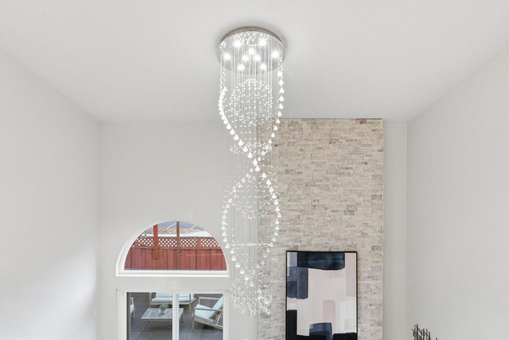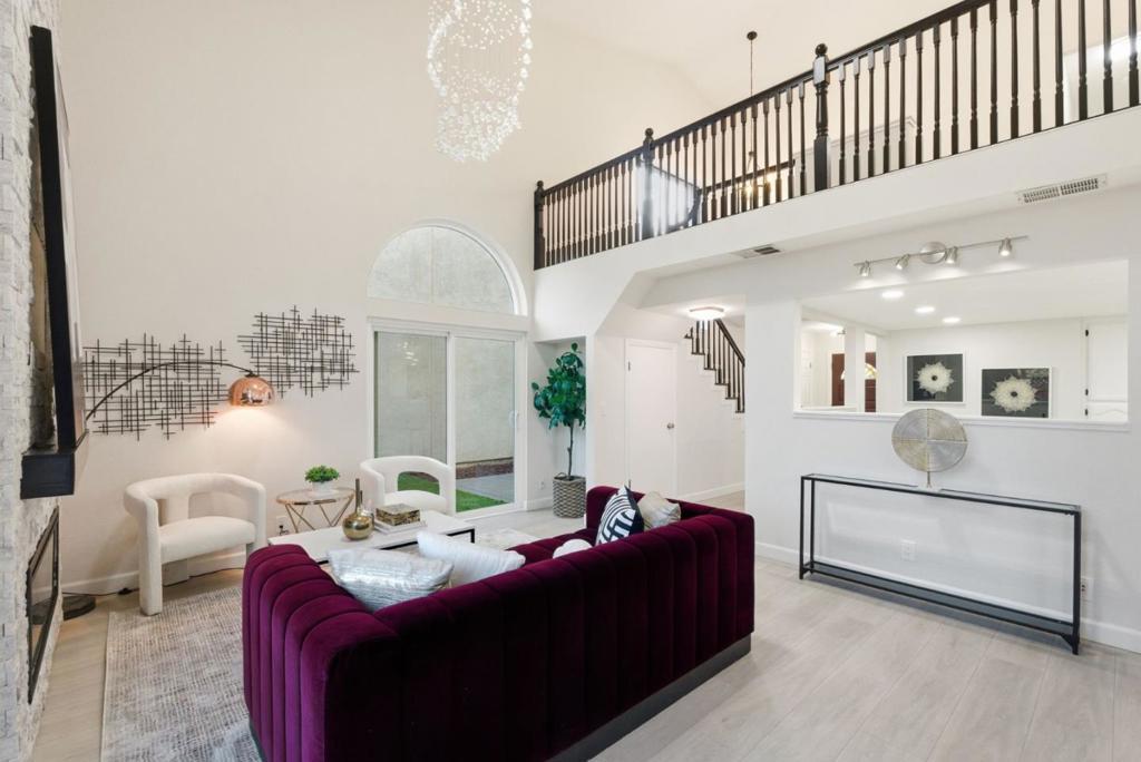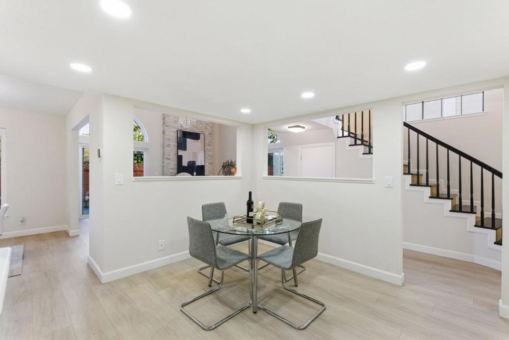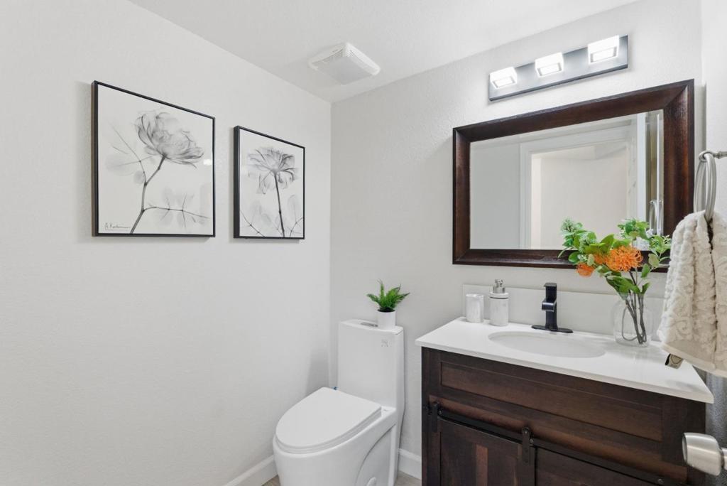 Welcome to 945 Oak Park Drive in the desirable El Toro Oaks community of Morgan Hill! This beautifully updated home offers modern style, comfort, and convenience. A formal entry with soaring ceilings create an open feel, highlighted by an electric fireplace with stone finish, statement chandelier, and modern light fixtures throughout. The kitchen features stainless steel appliances, quartz countertops, a center island, breakfast nook, and adjacent formal dining area, ideal for entertaining and everyday living. Upstairs, the spacious primary suite includes a remodeled bath with quartz countertops, dual sinks, rain shower head, and built-in Bluetooth speaker. Two additional bedrooms and a refreshed hall bath with a custom wood vanity and refinished mirror complete the level. The front and backyard offer low-maintenance landscaping with stamped concrete hardscape, and the backyard features artificial turf for easy year-round enjoyment. Additional highlights include a Tesla EV charger, presidential roof with approximately 30 years of remaining life, and access to the community pool and spa. Conveniently located near the Morgan Hill Library and just moments from downtown amenities, parks, trails, local wineries, and Highway 101, offering peaceful living with excellent accessibility