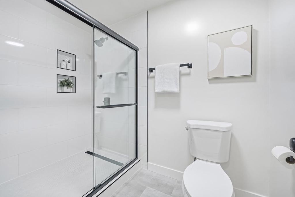 Stunning End-Unit with Private entrance in the prestigious Miramar Terrace gated community! Fully remodeled in 2021, this bright and spacious home features an open living/dining area with high ceilings and tons of natural light, leading to a large private balcony. The remodeled kitchen boasts quartz countertops, beautiful backsplash, white shaker cabinets, and SS appliances. Bathrooms are upgraded with sleek fixtures, quartz counters, and designer tile. The Expansive master suite offers vaulted ceiling, dual closets, and dual-sink vanity. Second bedroom includes walk-in closet. Additional highlights include recessed lighting, plantation shutters, central A/C, in-unit laundry, and extra storage unit. Two parking spaces plus ample guest parking. HOA covers water, gated entry, security patrols, garbage, gas, and amenities including pool, spa, clubhouse, sauna, and gym. Ideally located in the heart of Santa Clara near Santana Row, Valley Fair, Nob Hill, Ponderosa/Eklund parks, restaurants, and major tech companies.