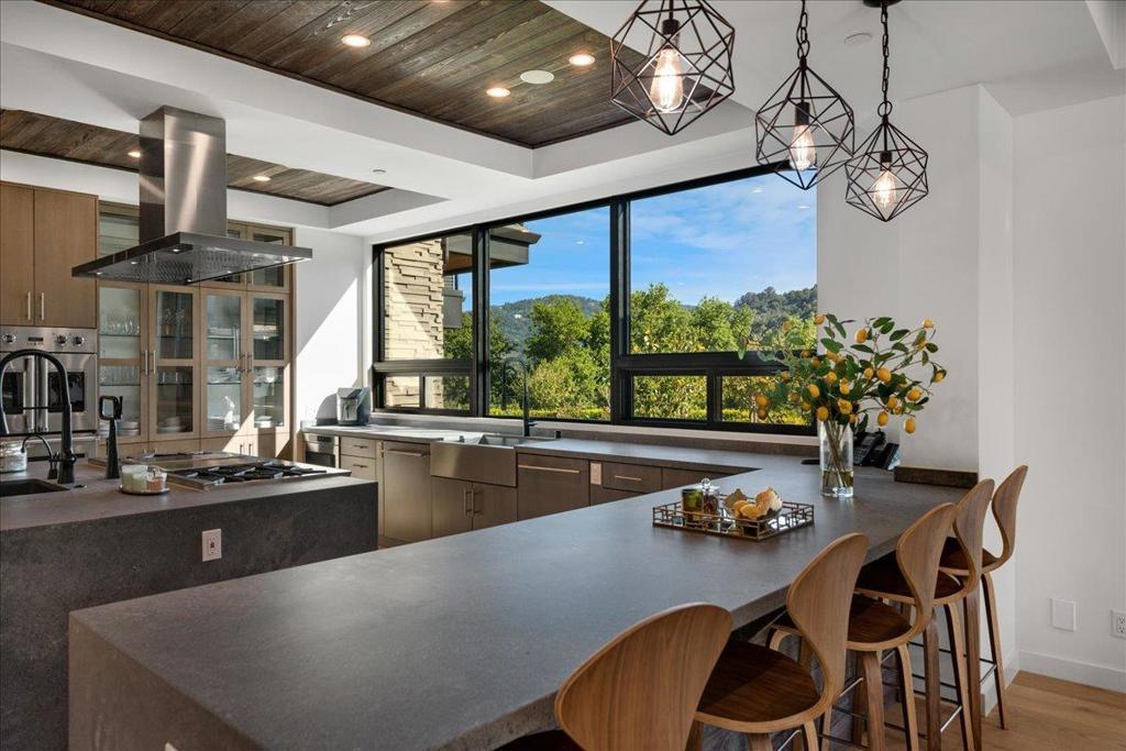An extraordinary opportunity to reside on approximately four acres of impeccably manicured, level grounds in one of Saratogas most exclusive enclaves, set against the serene backdrop of the Saratoga Mountains* Tucked away in remarkable privacy, this distinguished property enjoys sweeping vistas of neighboring estates valued between $10 to $20 million, as well as surrounding vineyards, rolling hills, and heritage wineries*This bespoke residence, completed in 2022, spans 10,415 SQFT across three luxurious levels, seamlessly connected by an elevator & grand staircases*Featuring six magnificent bedroom suites, seven designer bathrooms, & four elegant powder rooms, the estate is gracefully sited on 4.19 private manicured acres*Expansive primary suite is a sanctuary of comfort & elegance* Detached guest house w/ its own living room and bathroom*An exquisite living room, grand great room, & a formal dining room all flow effortlessly into the open-concept, state-of-the-art kitchen*Resort like bar, home gym, library, golf simulator room, outdoor chefs kitchen, & 9 fireplaces/firepits*A true modern architectural masterpiece set within one of the most prestigious Silicon Valley neighborhoods*Every aspect of the construction reflects an uncompromising commitment to quality & craftsmanship*