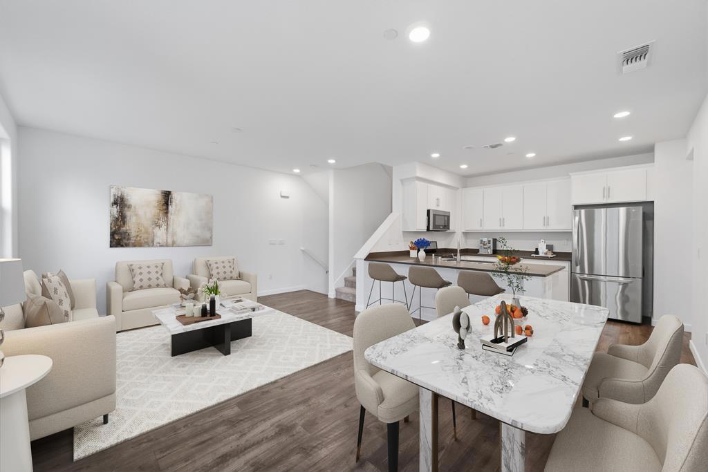 Welcome to this charming townhome located in the vibrant Berryessa area with low HOA! Experience contemporary living in this stylish townhome, expertly crafted by the renowned Pulte Homes. Finished in June 2018, this 1,667 sq ft 3 bed, 3 bath over 3 floors. Open plan living room, dining & kitchen. Kitchen has upgraded white slab cabinets, upgraded hardware & upgraded quartz counters & stainless steel appliances. Second floor has upgraded laminate flooring with LVT plank in all baths. laminate flooring in Master, carpet in the 2nd bedroom and hallway. large washer/dryer closet on 3rd floor. Master bed has a large walk-in & balcony, dual sinks in the master bath, and a walk-in shower. 2 car tandem with storage. LED lighting, A/C with fresh air fan, tankless water heater & more. Over $20,000 worth of builder upgrades. Conveniently located in between HW101, 680 & 880 & NEW BERRYESSA BART station ,with a Google shuttle stop right in front of the community. Shopping and dining are just minutes away with Costco, Hmart,99 Ranch, and Sprouts nearby. It's also close to Stratford and Challenger schools, making it perfect for families. Don't miss the opportunity to make this beautiful home yours!