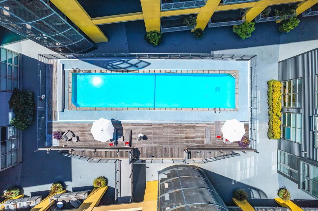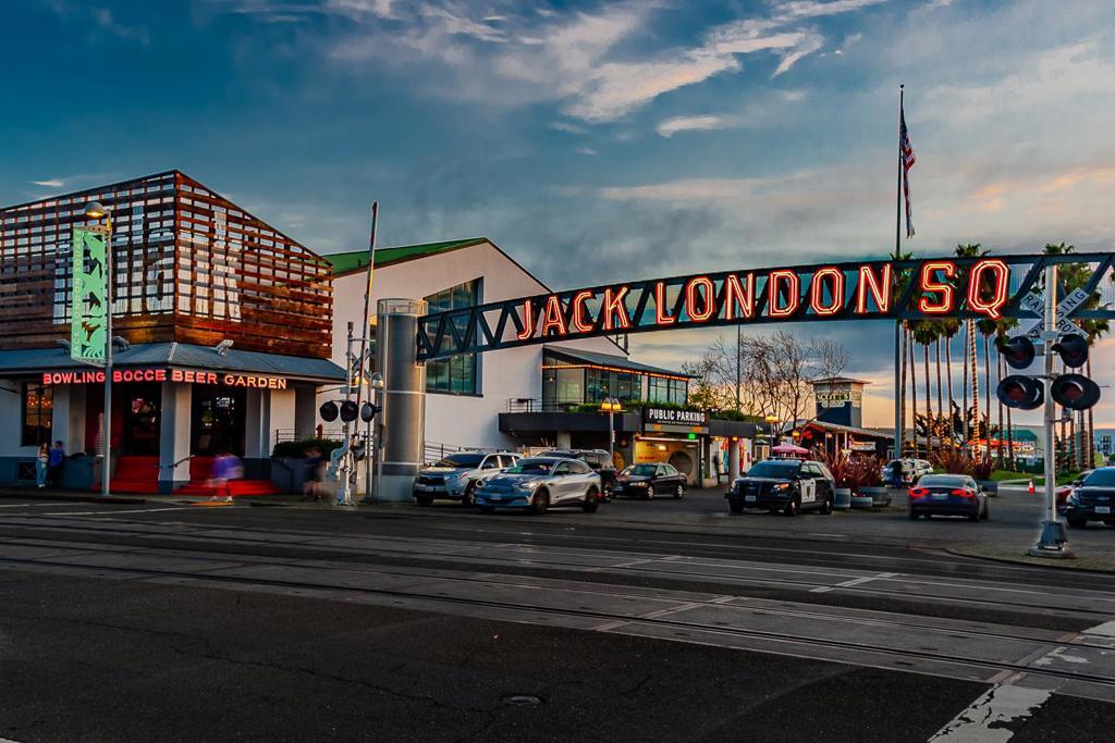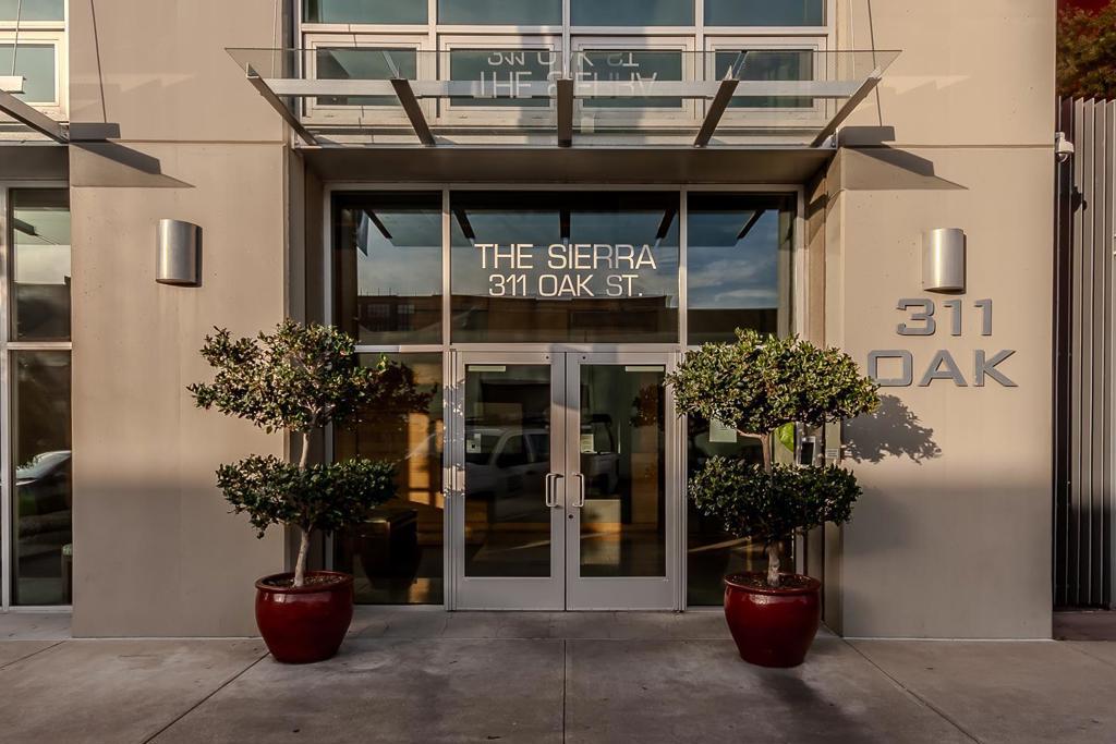 Amazing luxury high-rise penthouse loft in full amenity building! Enjoy elevated living in this stunning two bedroom two bathroom penthouse at The Sierra at Jack London Square. Designed by award-winning Kava Massih Architects. This top-floor residence combines soaring 18-ft ceilings, floor-to-ceiling bay window with breathtaking city views, and refined finishes throughout. The main level boasts a dramatic limestone entry, hardwood floors, sleek kitchen with refinished cabinets, new refrigerator, sunlit bedroom, Italian porcelain bath, and in-unit laundry. Upstairs, a private loft suite includes a spacious ensuite bath and a large private terrace ideal for upscale entertaining or tranquil mornings. Thoughtful upgrades include new carpet, designer paint, Lutron dimmers, recessed LED fixtures, custom closets, and air conditioning. Includes two rare side-by-side garage spaces. Enjoy full-service luxury amenities: fob access control building, 24/7 concierge, heated lap pool, fitness center, sauna, media room, two conference rooms, bicycle storage, and WIFI in select common areas. Walk Score of 93, walk to trendy Jack London Square, waterfront dining, wineries, breweries, coffee houses, live entertainment, farmer's market, Oakland estuary, SF Ferry, BART, Amtrak, freeways and more.