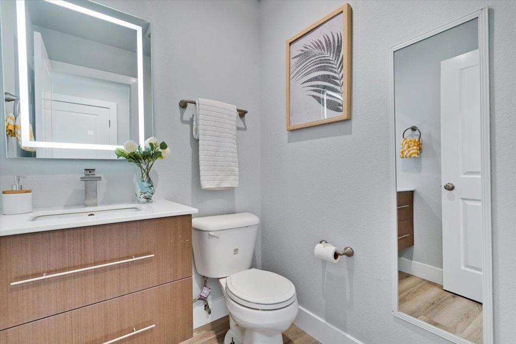 Welcome to a beautiful unique charming two story home located in a heart of San Jose. Home is an open bright high ceiling with spacious floor plan w/ 3 beds & 2.5 baths, 1,478 sqft living space. Home offer spacious kitchen cabinet w/quartz counter top, food pantry, brand new refrigerator, an electric oven range, hood over range and recessed light. Double panel windows, brand new interior paint, brand new laminate floor throughout first and second floor hallway and brand new carpet in the bedrooms. Tile floor throughout the bathrooms and separate laundry room. Spacious back yard with plenty of fruit trees and freshly paint deck where you can enjoy and relax after a long day working. Close to freeway 680, 880 and 101, shopping, restaurants, and public transportation. A must see to appreciated it.