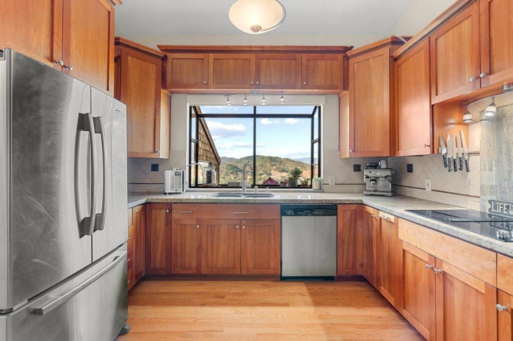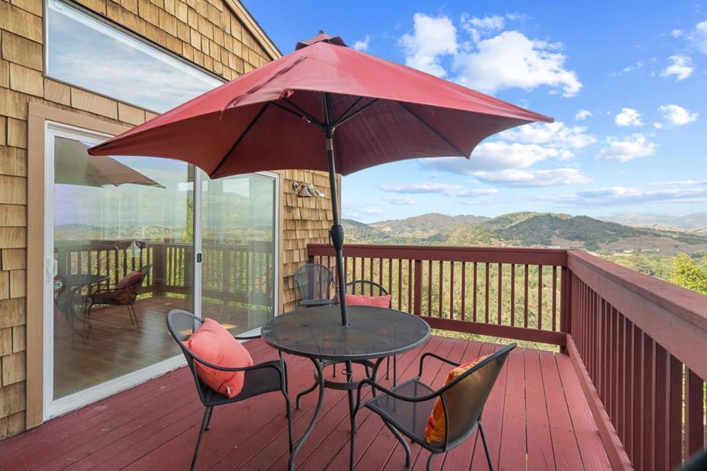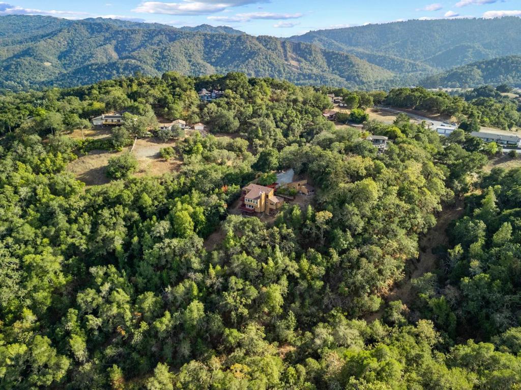 Hillside ultra private retreat featuring unparalleled scenic views. Lush sloped landscaping. 9040 El Matador Dr is a serene 3-acre retreat at the end of a quiet cul-de-sac in Gilroy, surrounded by nature's beauty and peaceful stillness. With panoramic views from nearly every room and five expansive decks, this home invites seamless indoor-outdoor living. Warm hardwood floors, granite slab countertops, and two fireplaces add charm inside, while the primary suite offers a jetted tub with stunning views perfect for quiet moments of relaxation. Thoughtfully designed to blend with the landscape, the property features a welcoming stone entry, an oversized 2+ car detached garage with a workshop and storage loft accessible with stairs, and expansive wooded grounds including a private shooting range. There's room to park the RV! Just minutes from town yet feeling worlds away, this one-of-a-kind property offers unmatched privacy, natural beauty, and the best of peaceful country living.