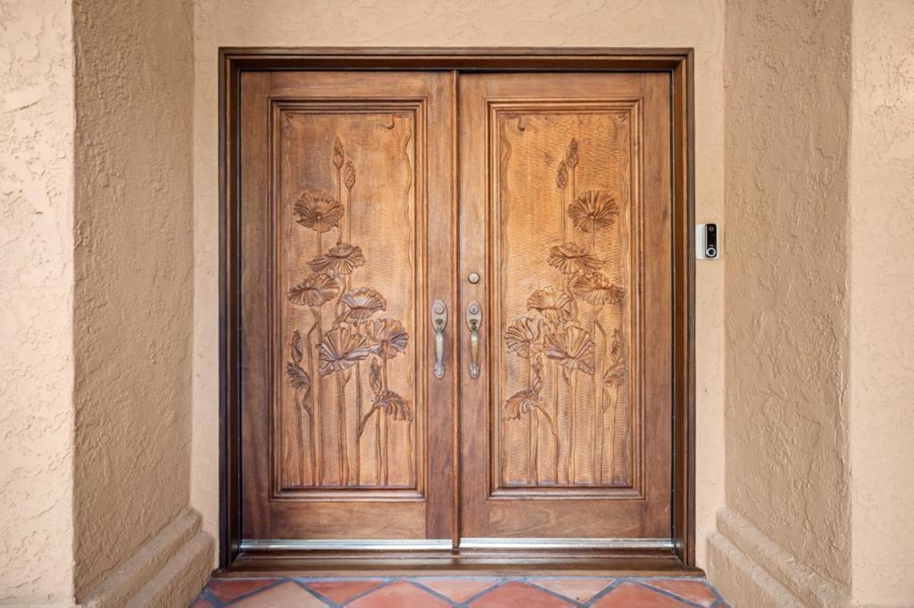 Nearly secluded within the prestigious enclave of Rancho Mar Monte, this custom-built Spanish Mediterranean estate offers exceptional privacy and timeless elegance just five minutes from downtown Carmel-by-the-Sea. Set on approximately 1.3 acres, the residence spans 4,631 square feet of refined open-concept living space, with sweeping valley views from most rooms. The home features five bedrooms and four bathrooms, showcasing Spanish tile and solid oak flooring, rich mahogany doors, and soaring ceilings that create an airy, inviting atmosphere. Bay windows and abundant natural light highlight the formal living and dining rooms, while multiple fireplaces add warmth and character throughout. The gourmet kitchen is designed for both everyday living and entertaining, equipped with high-end appliances, a butcher-block island, and a spacious chefs pantry. A formal dining room, breakfast nook, and breakfast bar provide versatile dining options. Cozy evenings await in the main living room or the separate family room, each centered around a fireplace. The expansive primary suite offers stunning valley views, its own fireplace, and a spa-inspired bathroom with jetted tub, separate stall shower, and an additional fireplace.
