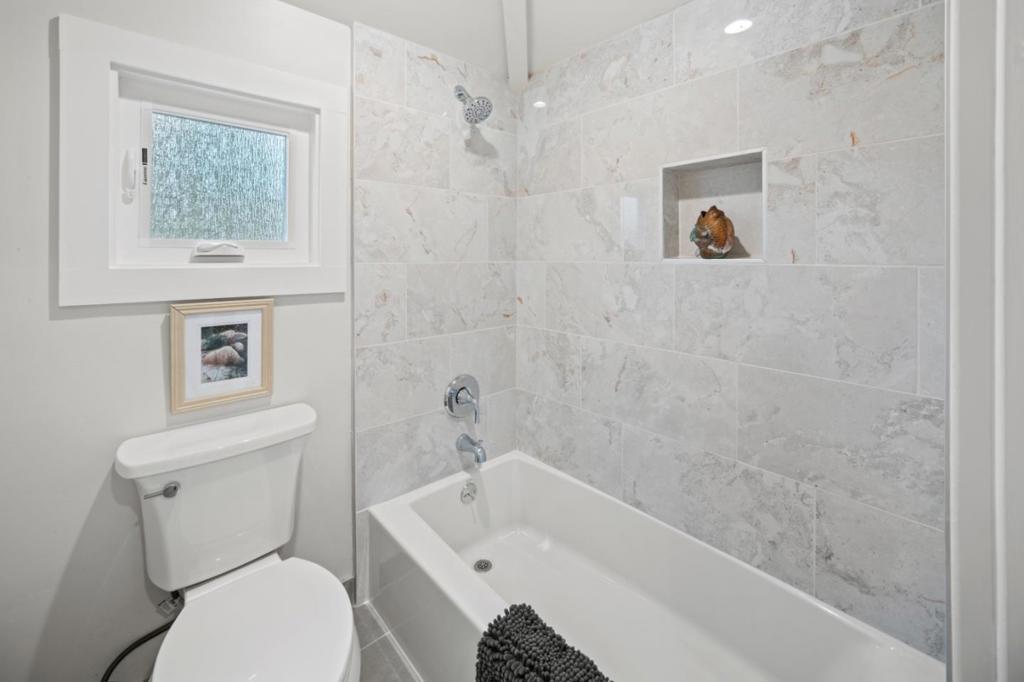 Experience the quintessential Pacific Grove lifestyle in this meticulously renovated 1908 beach cottage. Situated among historic landmarks, you are just two blocks from downtown and five blocks from the stunning coastline. The interior features an airy, open-concept floor plan with European white oak floors and light filled living spaces that flow seamlessly through French doors to a private patio. The chef-inspired kitchen boasts quartz countertops and premium appliances. Each bedroom serves as a private retreat with its own designer-tiled full bath; the primary suite includes a spacious walk-in closet, a double-sized shower, and direct garden access via French doors. Stripped to the studs, this home offers: new roof, plumbing, electrical, drywall, energy-efficient casement windows, landscaping, structural retaining wall, EV charging outlet and a refreshed detached one-car garage. Located minutes from Pebble Beach, Carmel-by-the-Sea, and the Monterey Bay Aquarium, this home offers the perfect blend of vintage charm and modern luxury for a full-time residence or coastal getaway.