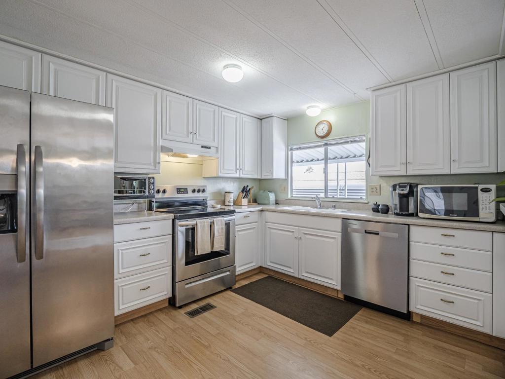 Look at this 1973 mobile home, it is a good one! Nicely maintained and remodeled makes it excellent value and a wonderfully comfortable home. There are two bedrooms and two baths, approximately 1344 sq. ft, plenty of outdoor space, a large sunny front deck, and wide tandem parking that can accommodate two full-sized cars. Large living room has an extra storage cabinet behind louvered doors; dining area has a built-in hutch & new light fixture. Kitchen has white laminate cabinets, stainless appliances, brand new dishwasher, double door refrigerator with ice/water dispenser, solid surface counters, and newer laminate floors. Family room off kitchen is great for informal eating, desk-workspace or another living space. The two full baths have upgraded vanities, tile counters & newer flooring. Both bedrooms have walk-in closets. Antonelli's MHP is a senior 55+ cooperative park that is centrally located in mid-county near shops, places to eat & Live Oak beaches. Park has a community pool, a clubhouse and outdoor landscaped common spaces for the residents to enjoy. Better take a look!