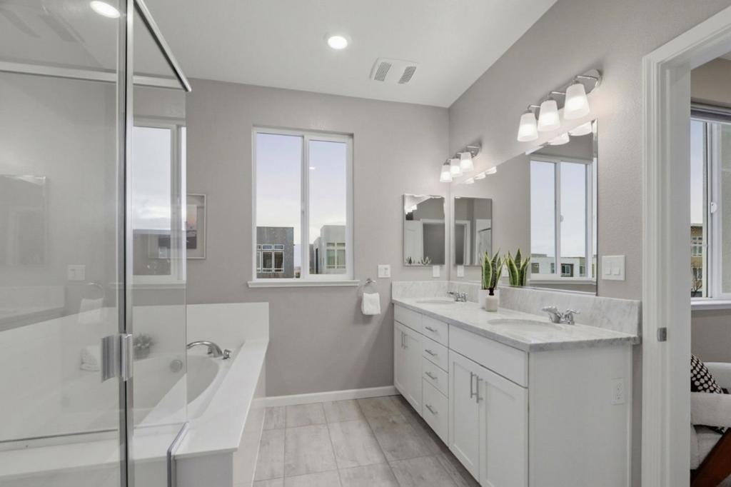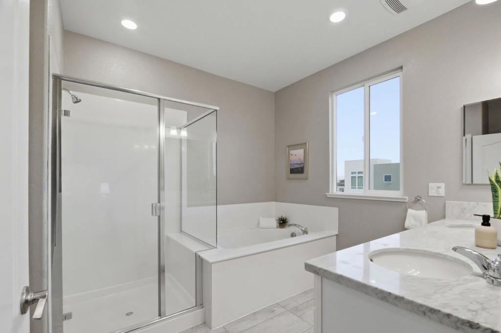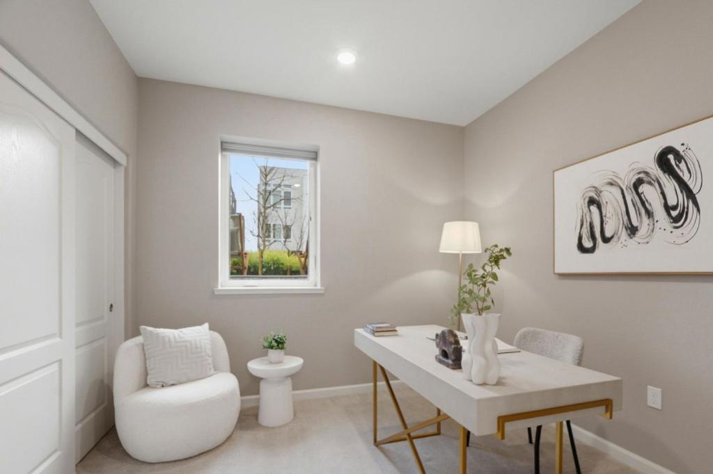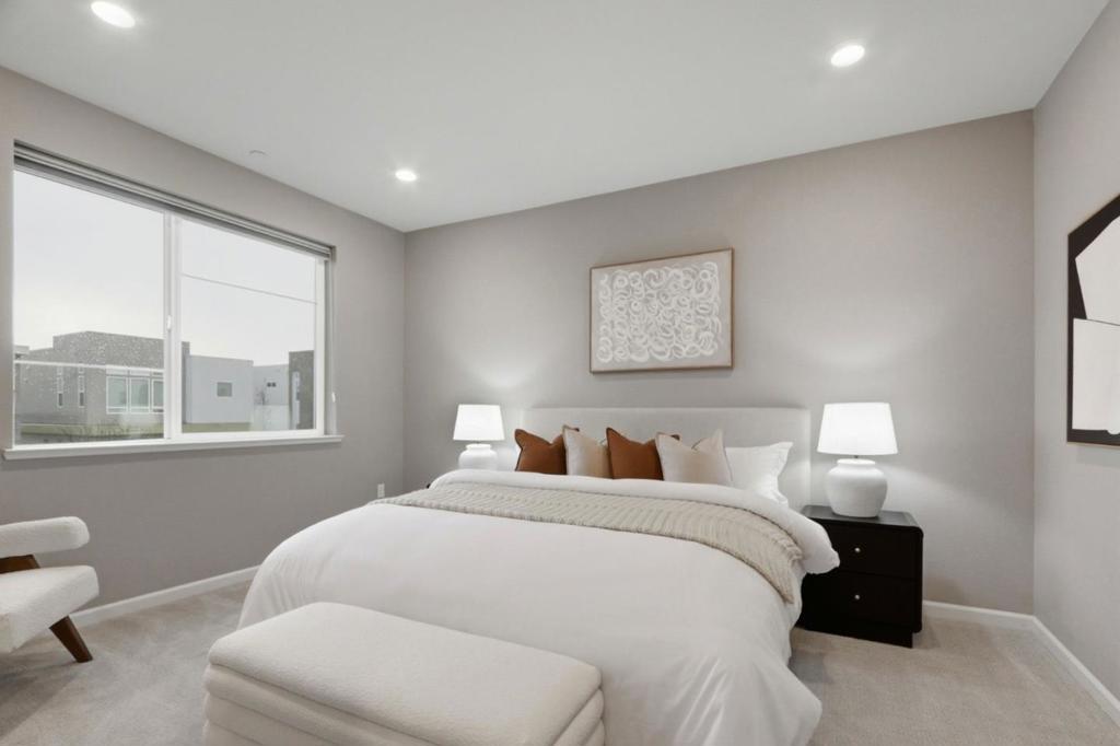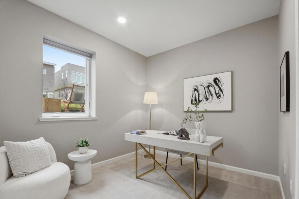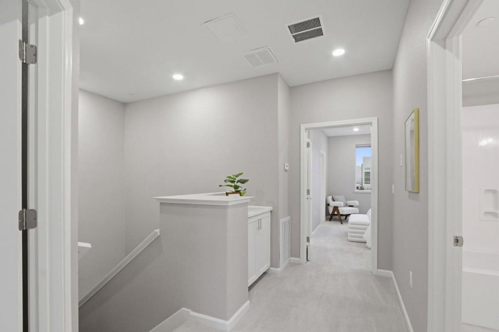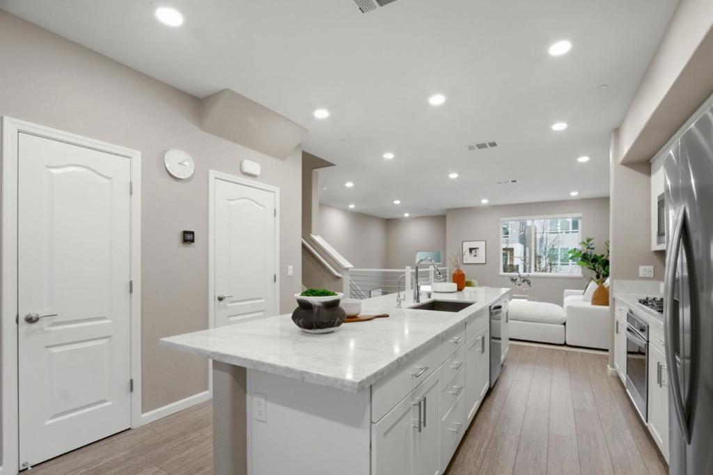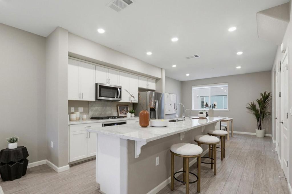 Perched in the sought-after Communications Hill community, this bright and modern tri-level townhome offers 4 bedrooms and 3.5 baths across approx. 1,995 sq. ft, featuring high ceilings, an open-concept great room, and a chefs kitchen with granite countertops, gas cooktop, stainless-steel appliances, and a standout oversized island with bar seating and a large sink-perfect for everyday living and entertaining. The first level includes a convenient junior suite-ideal for guests, extended family, or a home office, while the upper level features a relaxing primary suite with a walk-in closet and double-sink vanity. Enjoy 3-zone A/C, energy-efficient double-pane windows, a tankless water heater, water softener, in-unit laundry with electric hookup, and an attached 2-car garage with an EV outlet. Close to parks, trails, shopping, dining, and transit options with easy access to Highways 87 and 85.