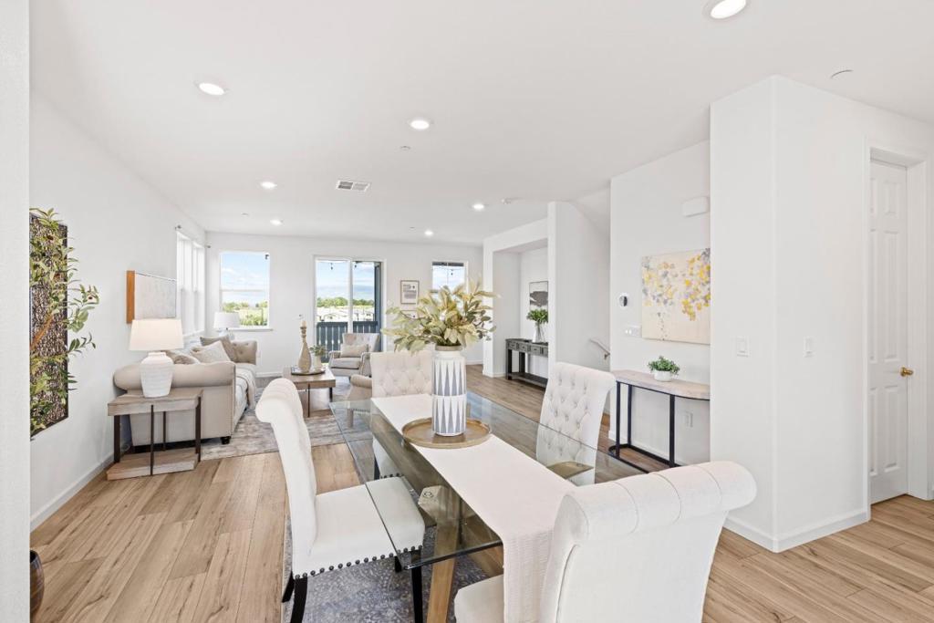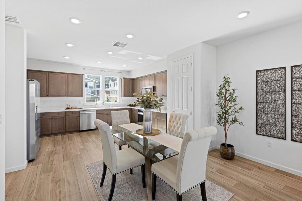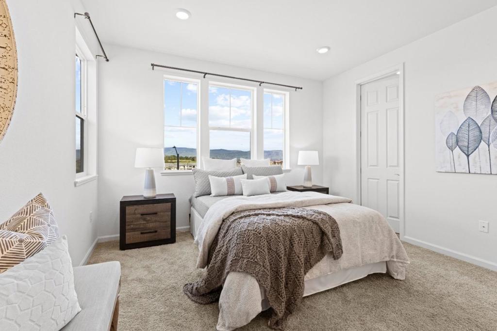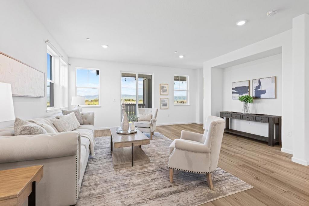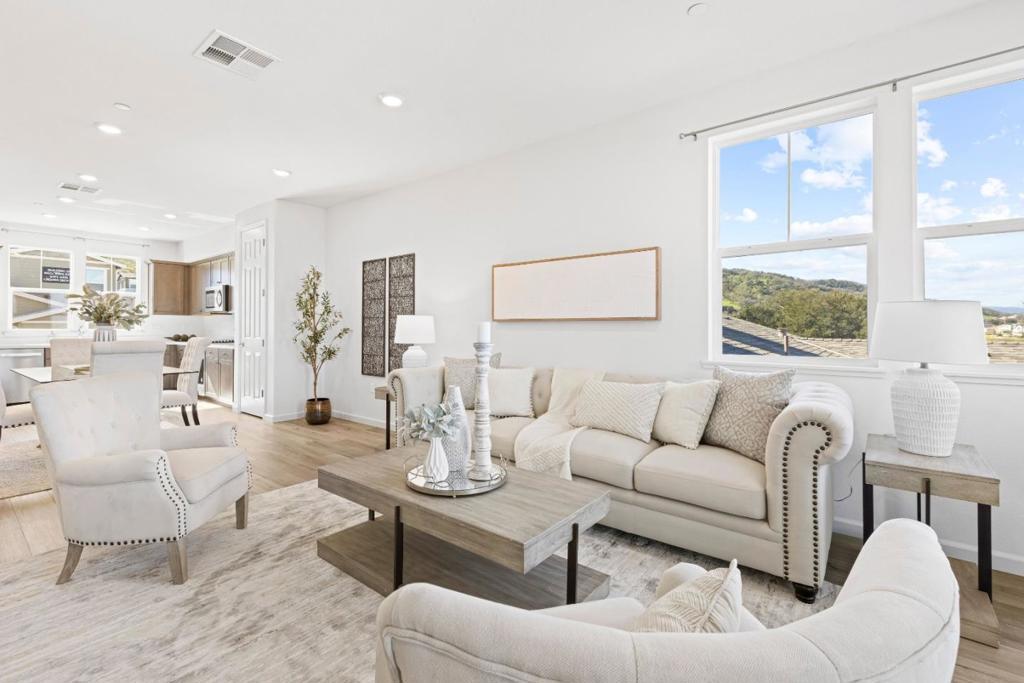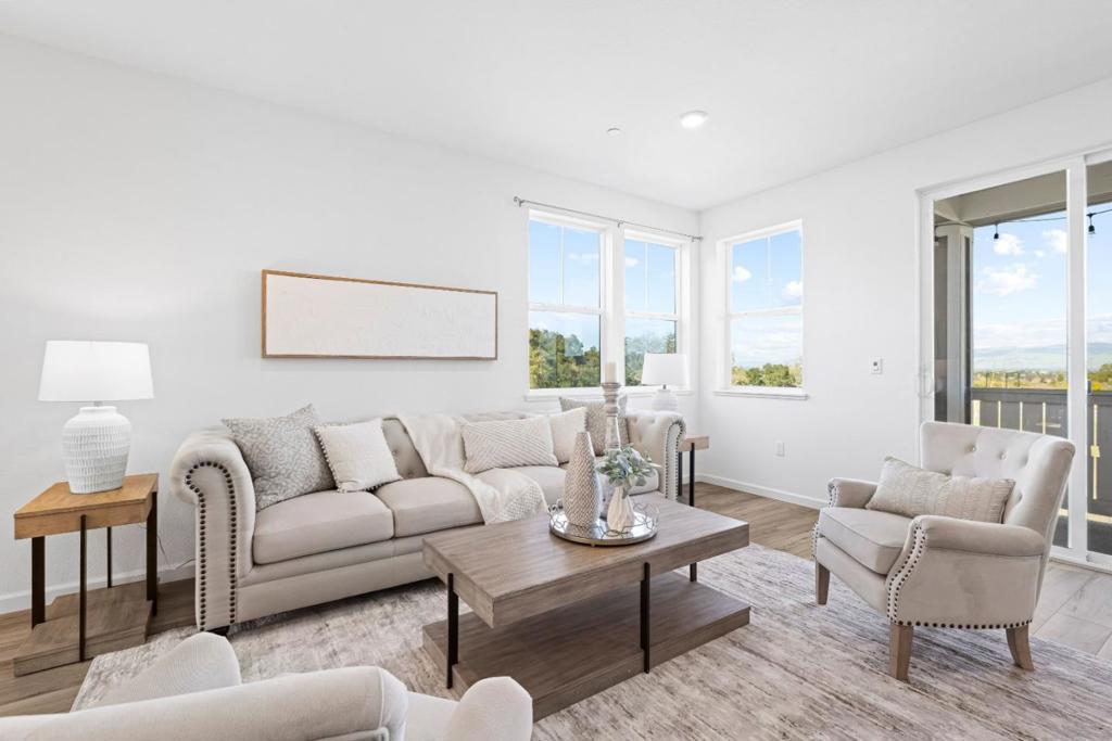 Beautifully and thoughtfully designed, upgraded, energy-efficient "cost-saving" tri-level townhome w owned solar, rare triple-zone HVAC, luxury vinyl plank flooring, upgraded lighting throughout, a whole-home water filtration/softener to protect appliances/plumbing from hard H20. Chefs kitchen boasts custom cabinetry, expansive counters, SS appliances, farmhouse sink, prewired for an island & generous pantry storage. Smart-home features include Cat 6 ethernet [3 strategically placed outlets for superior internet connection], smart Ecobee thermostat, EV charging infrastructure, ceiling fan pre-wire in all bedrooms, & smart garage opener. Flexible first-floor space with upgraded 1/2 bath ideal for office/gym/optional 4th bedroom. Primary suite offers natural light, mountain views, walk-in closet, and upgraded shower. Dedicated laundry room with W/D and pre-plumbed for a utility sink. Finished 2-car attached garage w epoxy floors, painted walls & smart door opener. HOA includes FIRE insurance, roof, exterior maintenance, bi-annual WINDOW & SOLAR panel cleaning, landscaping, gardens, dog park, playground, BBQ area, and trails. Minutes to Christmas Hill Park, wineries, shopping, hiking, and Hwy 101 & 152. Enjoy mountain views, sunrises/sunsets, and holiday fireworks from the balcony.