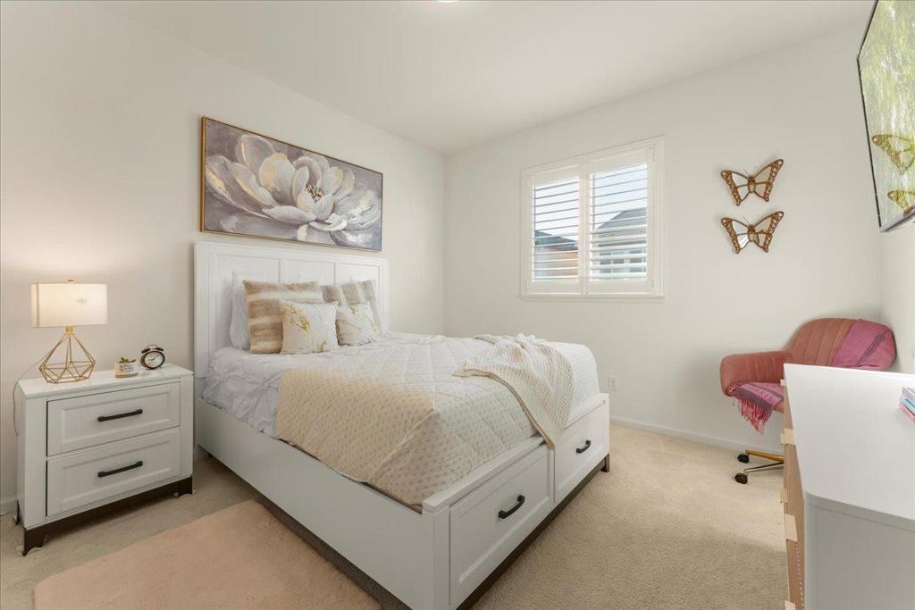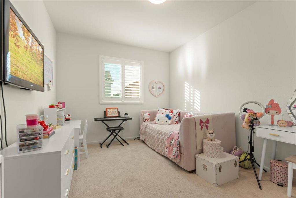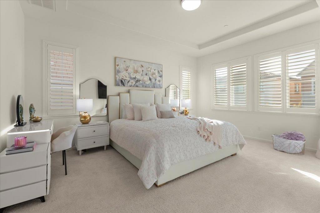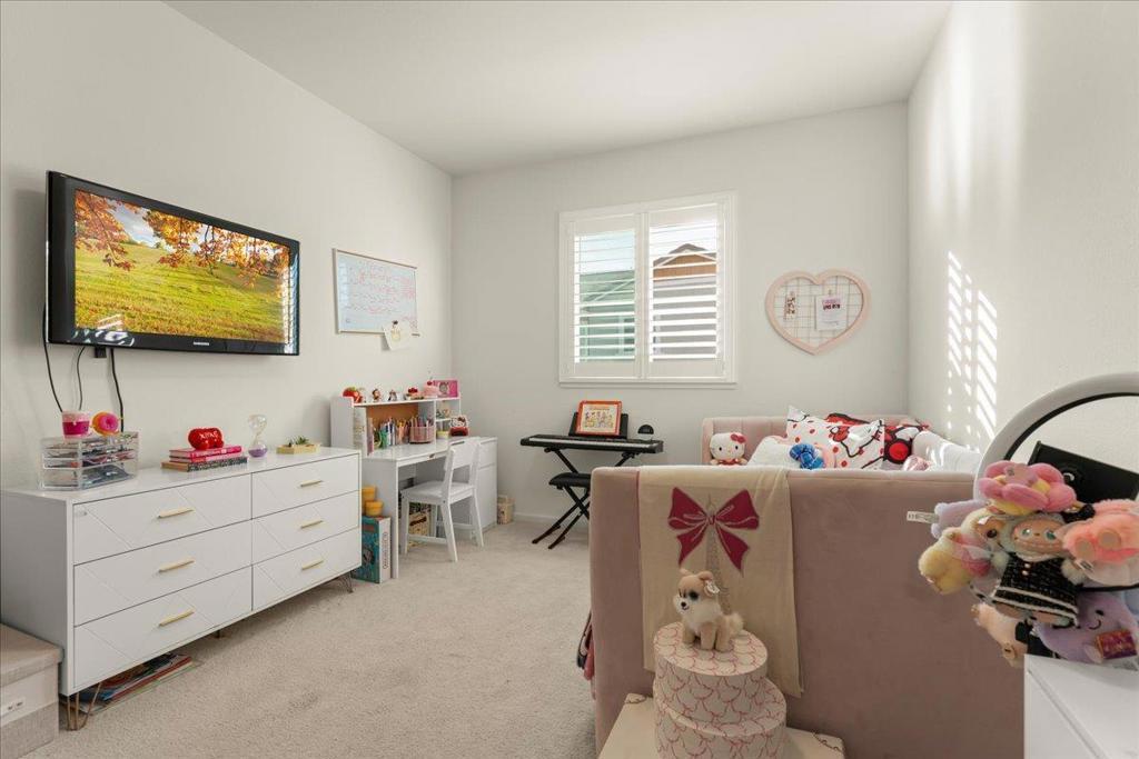 Discover the exquisite charm of Ambrosia at Glen Loma Ranch! This home features an open floor plan filled with natural light and modern finishes throughout. The heart of the home is the spacious kitchen, equipped with high-end stainless-steel appliances, a quartz island, upgraded quartz countertops, and ample cabinetry. A convenient first-floor bedroom or office includes direct access to a full bathroom. Upstairs you'll find three bedrooms, including an owner's suite with two walk-in closets and a spa-like bathroom featuring a soaking tub, separate shower, and dual sinks. An open loft provides versatile space that can serve as a second living area, home office, or playroom. Additional highlights include recessed lighting, smart home features, dual-zone HVAC, tankless water heater, upstairs laundry room, and attached two-car garage. Step outside to a landscaped backyard with a raised garden bed, patio, and views of the Santa Cruz Mountains. The home sits on a quiet street and is within walking distance to Las Animas Elementary School and Cydney Casper Park. Conveniently located near Highway 101, shopping, dining, Gilroy Gardens, Eagle Ridge Golf Course, and hiking/biking trails, this residence offers the ideal blend of luxury, functionality, and comfort for your dream family home.