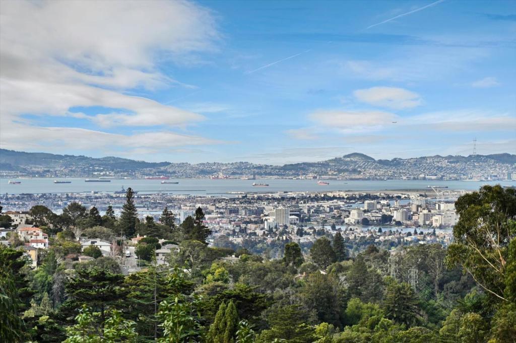 Private Oakland hills home with 5 bedrooms | 4.5 bathrooms with Bay & City Views and open floor plan Set on an 11,475 sq ft wooded lot in sought-after Piedmont Pines, this mid-century home offers sweeping city and San Francisco Bay views with exceptional privacy., The property provides a peaceful hillside setting just minutes from Montclair Village shops, restaurants, and the farmers market. . Large windows and sliding glass doors capture natural light and scenic views while creating seamless indoor-outdoor living. Each level opens to a private deck, ideal for relaxing, entertaining, and enjoying Bay sunsets. The spacious layout offers versatile spaces suitable for home offices, a gym, media room, or creative studio. The lower level includes a separate unit with its own entrance, ideal for an au pair, in-law suite, guest quarters, or potential rental income. Conveniently located near parks, East Bay hiking and biking trails, Highway 13, BART, and public transportation