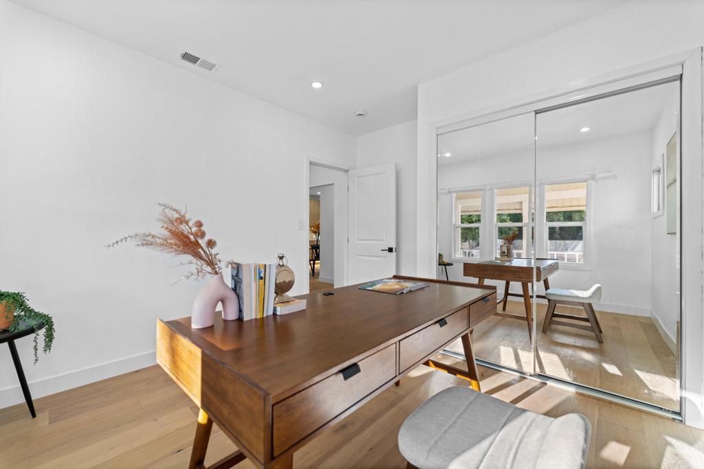 Welcome to this charming 2-bedroom, 2-bathroom home located in the vibrant city of San Jose. This cozy 993 sq ft residence offers a well-appointed kitchen featuring modern amenities such as 4 zone refrigerator, stainless steel dish washer with 3rd rack. INDUCTION cooktop, quartz countertops, dishwasher, garbage disposal , microwave, tons of counter space making it perfect for culinary enthusiasts. The home boasts beautiful engineered hardwood and tile flooring throughout, adding to its stylish appeal. A high ceiling in the living areas enhances the sense of space, while a walk-in closet provides ample storage. The laundry area is conveniently located in the utility room. Both bathroom got a makeover worthy of being in a magazine. Spacious master bathroom features a programable heated floor, multi function bidet toilet and large walk in shower with huge soap box. Walking distance to hiking trail, park, restaurants and coffee shops. Short drive to all major commute routes. Huge bonus room or storage space in the attic. FOR SALE AS INVESTMENT PROPERTY ONLY. CURRENT RENT $4100 Per month.