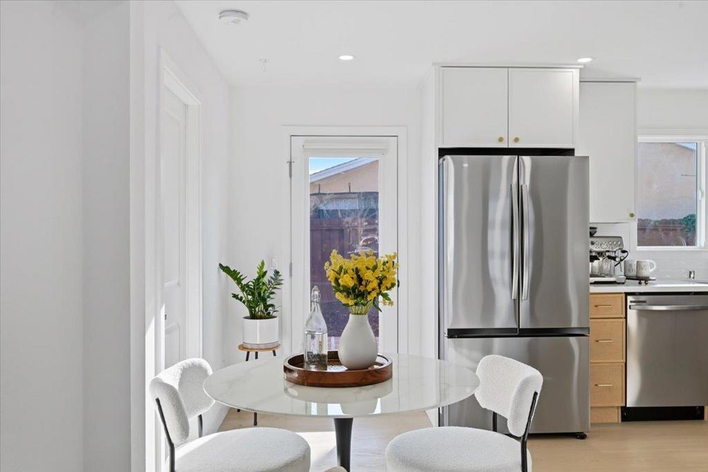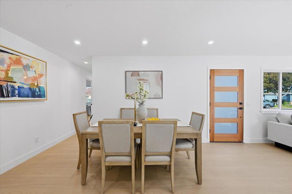 Step into this permitted new expansion and meticulously designed home, recently upgraded from 3B1B 939 sqft to 4B2B 1229 sqft, offering a modern open layout with more living space and functionality. Situated on an expansive corner lot of 6,900 sqft, this home reflects quality and care from the low-maintenance front yard and countless elegant upgrades. The home showcases SPC 8mm flooring, new double-pane shatter-resistant windows, new interior doors, and recessed lighting. The stylish kitchen features elegant two-tone slim shaker cabinets and quartz countertop with backsplash, stainless steel Samsung appliances, a smart gas range with integrated griddle, and modern fixtures. The new bathroom showcases high-end wall and floor tile finishes, a new TOTO toilet, a Delta shower system, and a marble-top vanity. Four spacious rooms with a well-designed layout provide an enhanced living experience. The expansive yard is ideal for outdoor entertaining, gardening, or adding an ADU for extended living or rental potential. You can also enjoy climate comfort with mini split heating & cooling installed in all rooms as well as the benefits of paid-off solar panels. Just 5 minutes to Ranch 99 and 10 minutes to Costco. Convenient access to Highway 880 & Dumbarton Bridge, Meta, Tesla, and more.