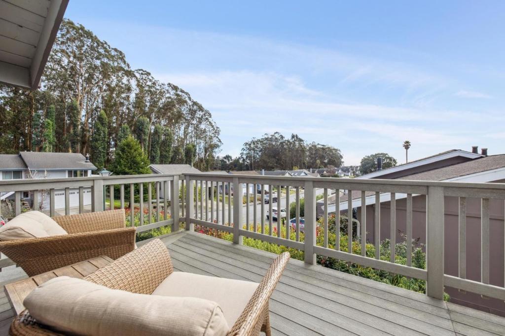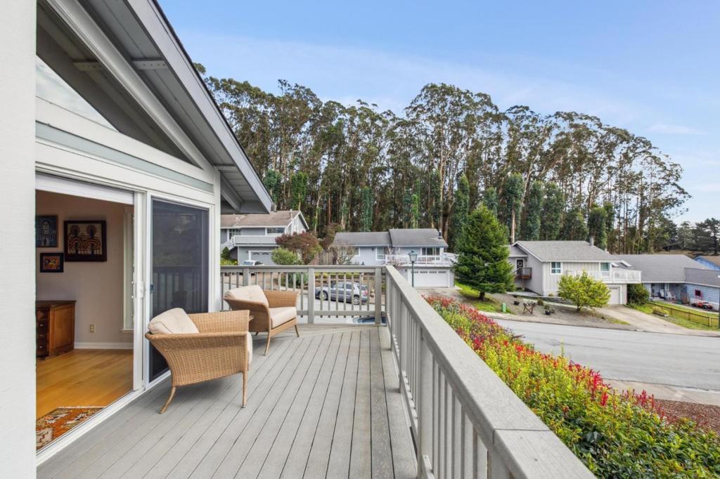 Located in the sought-after Clipper Ridge neighborhood, moments from the coastal charm and waterfront dining at Pillar Point Harbor, this spacious home with views of the ocean and open space embodies coastside living. Set on a 7,300+ sq ft lot, the residence offers 1,770+ sq ft of comfortable living space with 4 bedrooms and 2-1/2 bathrooms. The light-filled living room features vaulted ceilings and a fireplace, creating a welcoming feel. Sliding glass doors lead to a composite deck, perfect for morning coffee or sunset evenings with filtered ocean views. The dining area flows into the kitchen with a center island, granite countertops, and stainless steel appliances ideal for casual meals and entertaining. Upstairs offers four bedrooms and two full baths, including a generously sized primary suite with its own ensuite. The lower level provides a flexible bonus space with a half bath and built-in storage, perfect for a home office, gym, media room, or guest retreat. Additional highlights include a two-car garage with storage, landscaped gardens, a covered carport for RV or boat parking, and a natural gas generator with automatic transfer switch for added comfort and peace of mind. With easy access to Highway 1, commuting north to San Francisco or enjoying nearby Half Moon Bay.