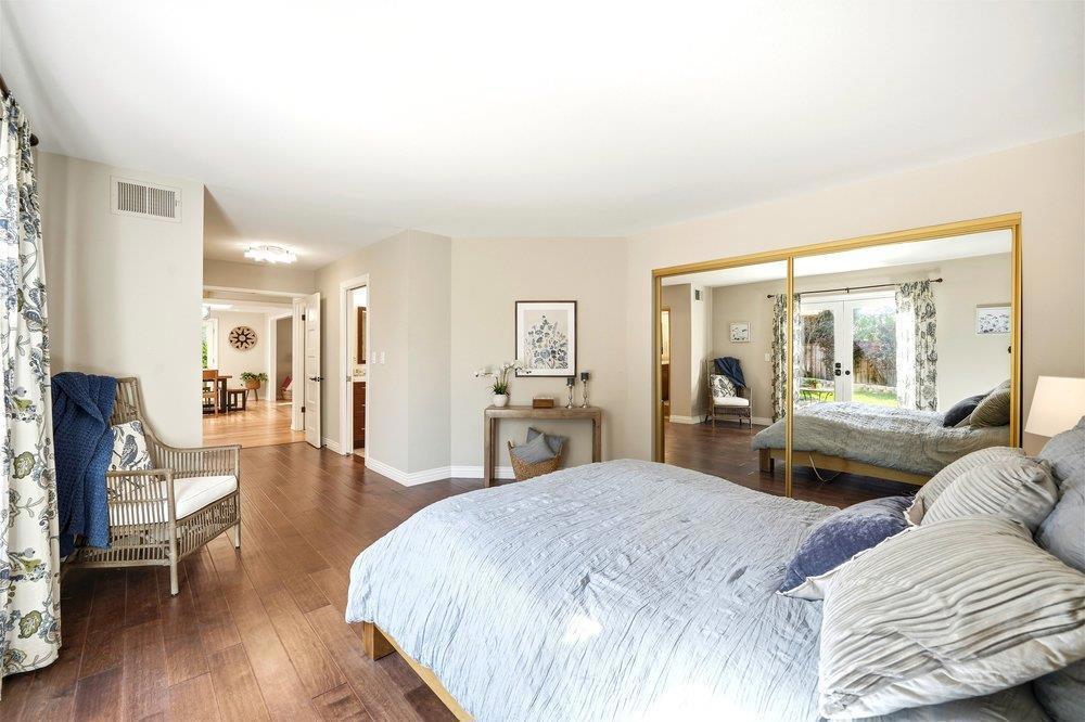 Welcome to this spacious 5-bedroom, 2-bathroom remodeled home located on a charming cul-de-sac in the desirable Almaden Valley. Enjoy the culinary delights of the well-appointed, open kitchen featuring Caesarstone countertops, Medallion shaker style soft-close cabinets, a 5 burner gas cooktop, built-in oven, & a generous breakfast bar. The versatile floor plan includes a formal living room, separate dining room, a family room, & a private downstairs primary suite with a 2nd bedroom for guests or home office. Enjoy the added flexibility of the upstairs bonus room that can be used as 2nd office or play space. The landscape steals the show in this home with a completely private back yard. Mature peach, plum, avocado, passion fruit, pomegranate, apricot, citrus trees make the backyard a retreat while providing healthy eating. Roses, lilies, grapes, berry bushes add to the beauty. The garage has doors to both the outside & into the home and a window. The location of this home puts you within minutes of local schools, grocery stores, the neighborhood coffee shop, restaurants and Quicksilver County park with fabulous hiking and biking trails. This home combines a prime location with comfort and charm-making it an exceptional opportunity in one of San Jose's desirable neighborhoods.