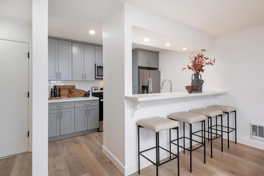 Welcome to this beautifully updated 2-bedroom, 2-bath corner residence in the heart of Burlingames sought-after Westside. Filled with natural light, this bright and contemporary home offers an open-concept layout designed for comfortable living and easy entertaining. The modern kitchen features quartz countertops, shaker cabinetry, stainless steel appliances, LED lighting, and a breakfast bar that flows seamlessly into the spacious living and dining areas. A gas fireplace adds warmth and character, while wide-plank luxury vinyl flooring enhances the clean, modern aesthetic throughout. Generously sized bedrooms include a private primary suite featuring a walk-in closet and lovely updated bath with a separate shower. A private balcony off the living room captures views toward the East Bay and Broadway, creating a relaxing outdoor retreat. Additional highlights include dual-pane windows, wet bar, secure building access, elevator, and controlled-access parking. Ideally located just blocks from downtown Burlingame, Caltrain, parks, top-rated schools, dining, and shopping. Enjoy excellent access to commute routes serving both San Francisco and Silicon Valley. A rare opportunity to experience urban walkability with the comfort of a well-established suburban neighborhood.