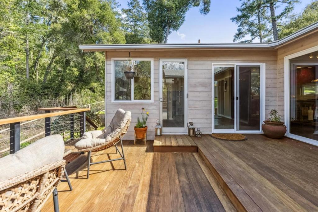 Escape to this beautifully upgraded contemporary cottage, where modern style meets the tranquil beauty of La Honda. Nestled on a semi-private, sun-drenched 1/3 ac lot, this turnkey sanctuary offers the perfect balance of seclusion and community. The open layout is anchored by a cozy fireplace, while the finished basement (228 SQ ft )& provides a flexible space perfect for a second bedroom or home office for total of 998 SQ ft. Step outside to your expansive private IPE deck to enjoy the lush greenery and berry bushes, or retreat to your secluded hot tub for a soak under the stars. With dedicated RV/boat parking and easy access to main roads, this home is an adventurer's dream. Enjoy exclusive access to a community pool, tennis courts, and miles of hiking trails right at your doorstep. Whether you are looking for a primary residence or a vacation getaway, this home is ready for its next chapter.