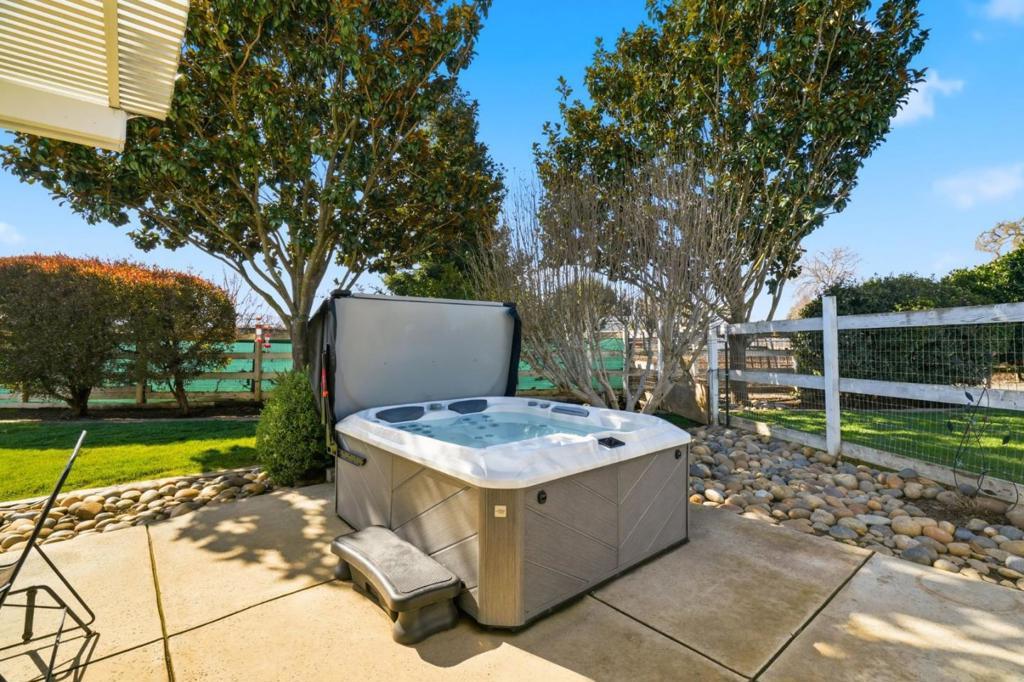 Step into your own private oasis on 2.4 acres, where luxury meets tranquility. This custom-built 2002 home offers the perfect blend of comfort and functionality. Entertain poolside, relax in the hot tub, or enjoy your own fruit orchard with peaches, oranges, lemons, avocados, pomegranates, and plums. Collect fresh eggs from your chickens! Equestrians will love the fully equipped 4-stall horse barn, while car enthusiasts will appreciate the 1,400 sq.ft. , detached 4-car garage. A half-moon driveway adds elegance, and the 36-panel paid solar system means virtually no electric bill.