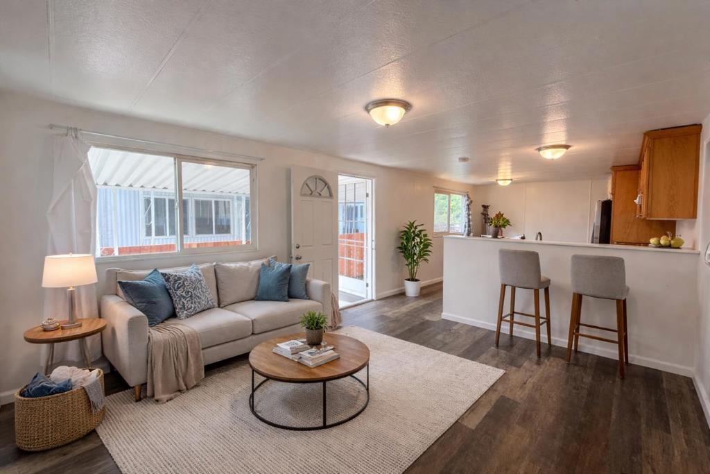Updated 2-bedroom, 1-bathroom mobile home located in the Golden Wheel community. Built in 1972 and approximately 720 sq. ft., this home features recent improvements including new flooring, updated light fixtures, a remodeled bathroom with a new sink and tile, and fresh interior paint. The exterior has also been freshly painted, and the fence has been repaired, giving the home a clean and well-maintained appearance. Golden Wheel is a well-established community offering convenient access to shopping, dining, and everyday essentials. Ideally located near major highways 680, 880, and 101, making commuting throughout Silicon Valley simple and convenient. A great opportunity for affordable living in a central location.