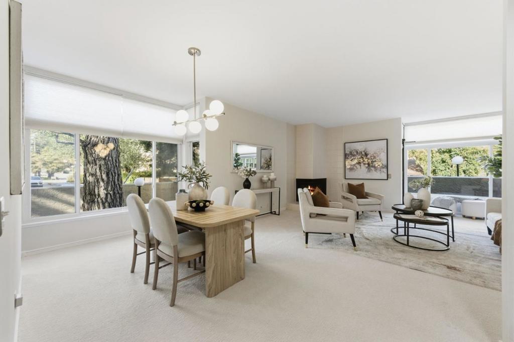 Situated in the heart of San Mateo, 11 Hayward Ave #1009 offers the perfect balance of comfort, convenience, and style. The inviting living room features a cozy wood-burning fireplace and walls of glass that open to your own enclosed patio ideal for morning coffee or a private garden retreat. The open dining area flows seamlessly into a well-appointed kitchen with dark wood cabinetry, granite countertops, modern appliances, and generous storage. The spacious primary suite offers a double-sink granite vanity, stall shower, and soaking tub designed for relaxation. A versatile second bedroom is perfect for guests, a home office, or fitness space, complemented by an updated full hall bath. Additional highlights include a dedicated laundry closet with full-size machines, extra storage, new carpet in the living areas, and rich wood flooring at the entry. The community features a resort-style pool, spa, and expansive sundeck. Just minutes from Central Park, vibrant downtown shops and dining, and Caltrain, with easy access to major commute routes, this home delivers comfort and connection in one exceptional location