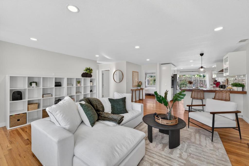 Fully remodeled inside and out in 2022, this beautifully updated Rose Glen home offers nearly 1,600 sq ft of thoughtfully designed living space with 3 bedrooms, 2 1/2 baths, and a 2-car garage. Renovations were completed with permits and feature gorgeous hardwood floors, new windows, and a finished garage that provides excellent bonus space for a gym, playroom, or workspace. The spacious primary suite features a cathedral ceiling, a large walk-in closet, and a well-appointed bathroom. The home's layout is ideal for both daily living and entertaining, with the kitchen overlooking the backyard for easy indoor-outdoor connection. The newly designed backyard includes a covered patio and lawn, creating a perfect setting for outdoor dining, celebrations, and gatherings. The open flow between the home and yard makes hosting effortless. Located in a quiet neighborhood with minimal traffic, the home enjoys a strong sense of community with friendly neighbors and regular neighborhood gatherings. Two nearby parks with playgrounds are within walking distance, offering easy access to outdoor recreation. While peaceful and tucked away, the location provides quick access to Willow Glen, Rose Garden, Santana Row and Campbell. A truly convenient point for commuting throughout Santa Clara county.