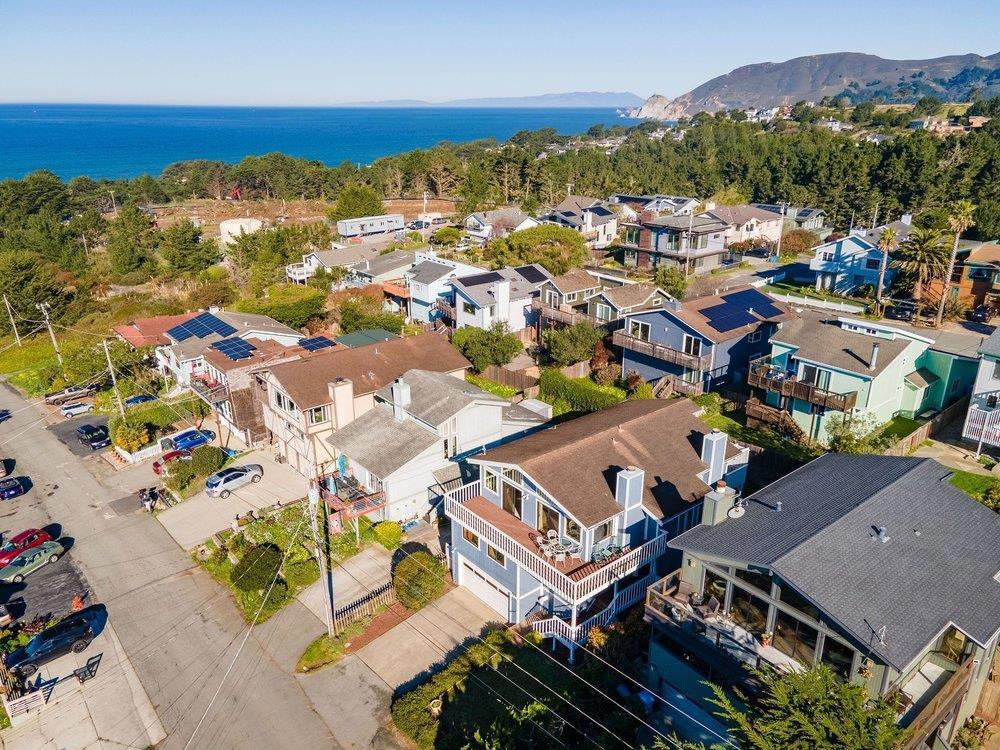 Welcome to your coastal retreat! Bask in stunning ocean views, breathtaking sunsets, and whale watching from the expansive deck and several spacious rooms in your new home by the sea. The floor plan balances comfort with versatility, while maximizing living space to accommodate your lifestyle. The main level boasts three generously sized bedrooms and an oversized bonus space to make your own. Upstairs the ocean-view living room features vaulted ceilings with warm wood accents, creating a inviting, airy atmosphere to gather while ensconced in the epic beauty of the ocean. Watch the waves from the kitchen and dining area or curl up with a good book in the cozy family room/ bedroom. Lovingly maintained by the original owner, this is a light- filled canvas for you to design your dream home. Located just minutes from pristine beaches, harbor activities, scenic trails within the Golden Gate National Recreation Area and nearby Fitzgerald Marine Reserve, this property offers an unparalleled blend of natural beauty and serene coastal living. A rare gem for those seeking the ultimate seaside lifestyle!