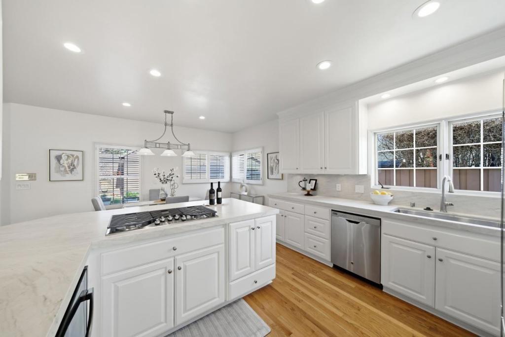 Completing full exterior Painting. 4-bedroom, 3-bathroom home located in the Desirable Rose Garden Neighborhood. Home and garage rebuilt from the foundation up in 1998. Boasting a generous 2,698 sq ft, this residence offers high ceilings, comfort and functionality. The Spacious kitchen is a chef's dream with a new gas cooktop, new quartzite countertops, and new self-cleaning oven, complemented by modern appliances including a top end refrigerator. Enjoy meals in the formal dining room, breakfast bar, or breakfast room. Huge master bedroom suite with all stone new master bathroom featuring large jacuzzi tub, large shower, skylight, wall mounted Toto toilet, wall mounted custom vanity and his and hers huge walk-in closets. Three bedrooms and two full baths upstairs and one bedroom and one full bath downstairs. Practicality meets convenience with a laundry facility on the upper floor. Interior features include: Impressive large two story living room, large dining room and a huge family room with fireplace over looking new concrete patio and garden. One car garage includes second story artist studio, extra long driveway, storage shed & electric security gate. Basement includes water heater, furnace storage cabinets. All new ceiling lighting.. Seismic upgrades meet 2019 CBC code