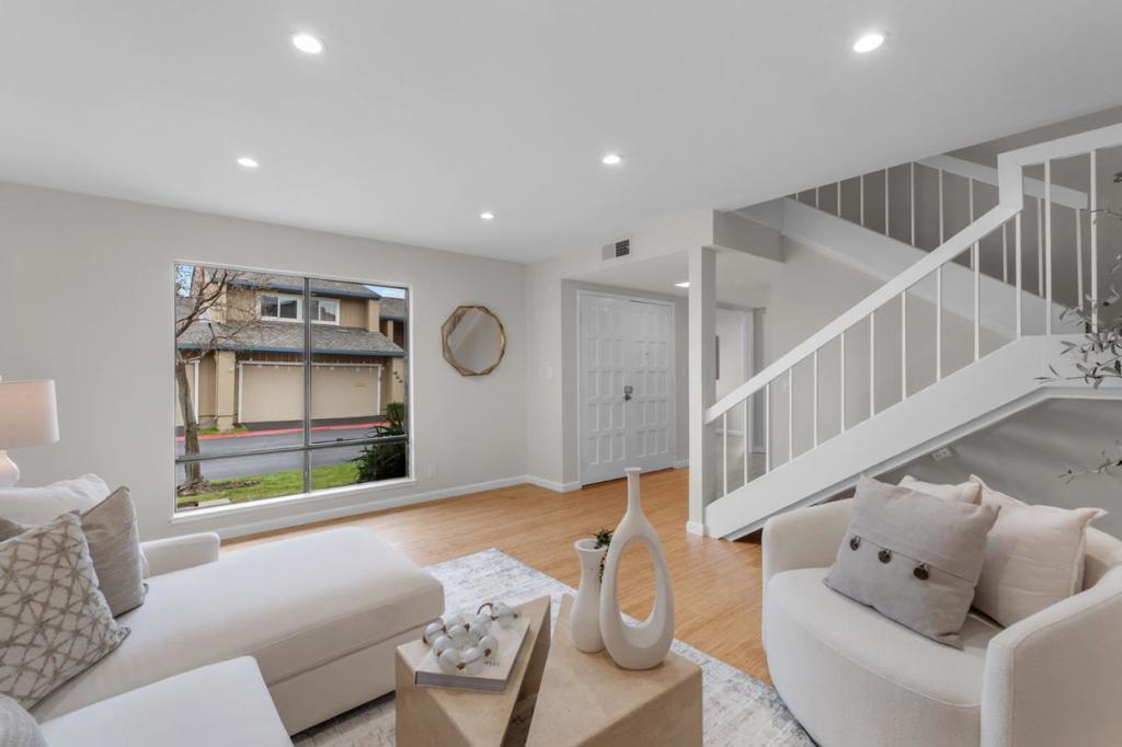 Set on a desirable corner in Foster City, this inviting townhouse offers comfortable living with a touch of everyday elegance. Warm refinished bamboo floors span the main level, and the front door opens to a sun filled living room that feels welcoming from the start. With over 1900 square feet, the home provides space to settle in without feeling overwhelming. The home offers a true dining room for gatherings, plus a separate family room with fireplace adjacent to the updated kitchen, creating natural spaces to relax, cook, and spend time together. Upstairs features a spacious primary bedroom with dual closets and a walk-in shower, along with three additional bedrooms and a large hall bathroom. 4 bedrooms and 2.5 baths provide flexibility for guests, office space, or changing needs over time. The rear yard includes a large stamped concrete patio, ideal for outdoor seating and everyday enjoyment. Central air conditioning keeps the home comfortable year-round. Close to parks, waterfront paths, shopping, and commute routes, this is Foster City living that is easy, comfortable, and simply makes sense.
