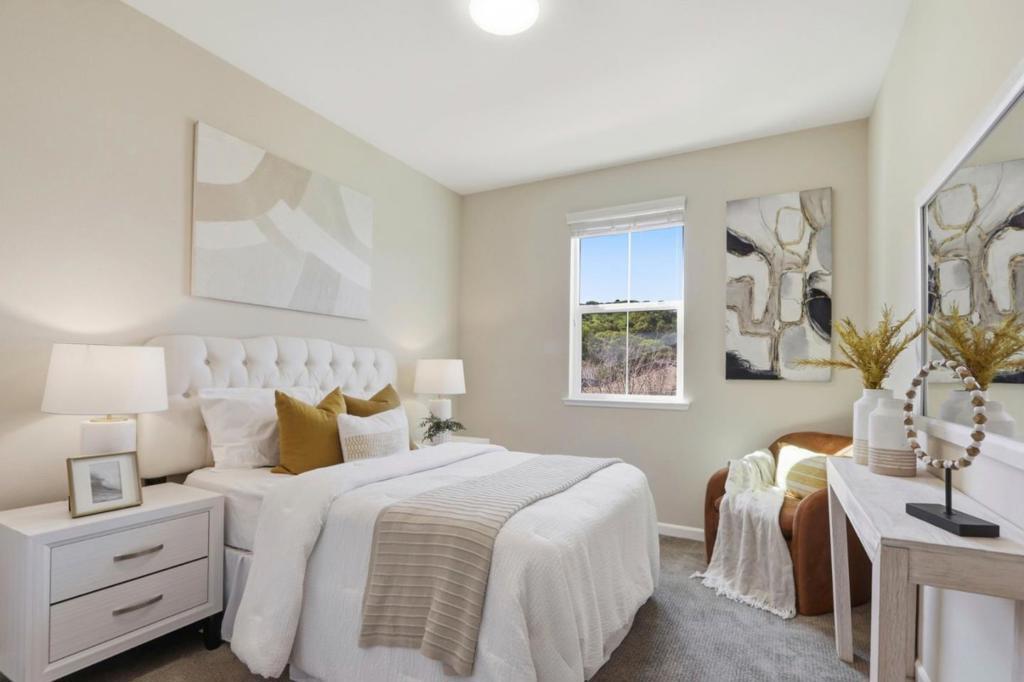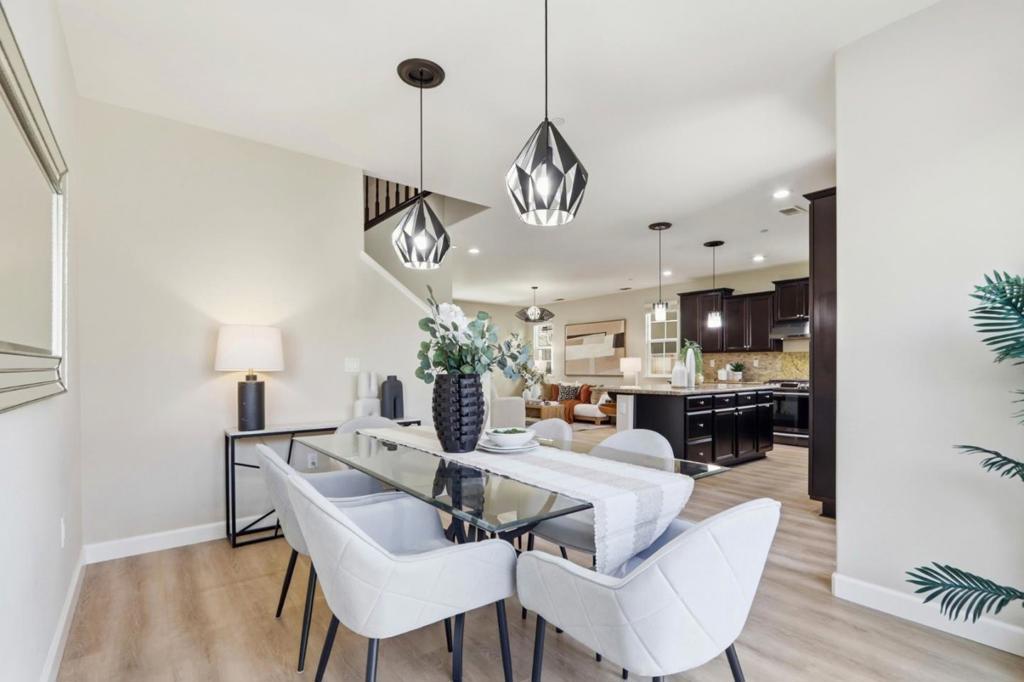Gorgeous 11-year-new end-unit townhouse with lots of natural light and incredible views of the hills in the Planned Unit Development (PUD) at Stonebridge. This spacious 1,986 sq. ft. home sits on a 4,227 sq. ft. lot, offering a single-family feel. Featuring 3 bedrooms plus a downstairs 4th bedroom/office and 2.5 bathrooms, this floor plan is ideal for a large household, working from home, or hosting guests. It has been freshly painted with new flooring downstairs. The kitchen boasts stainless steel appliances and large island. The primary bathroom features a sunken tub, marble shower, and walk-in closet with built-in safe. Upstairs are 3 bedrooms, 2 full baths, a laundry room, and office nook for working/studying. Additional highlights include high ceilings, dual-pane windows, separate HVAC zones, water softener, and plug for electric car in the detached 2-car garage with epoxy flooring. The private fenced backyard with stone patio and artificial turf is perfect for entertaining and low maintenance. HOA amenities include two parks, playground, BBQ and picnic area, bocce ball court, and community gardens. This north Morgan Hill home offers convenient commuter access to Silicon Valley and is minutes from downtown restaurants, shopping, Farmers Market, Morgan Hill Library, and more.