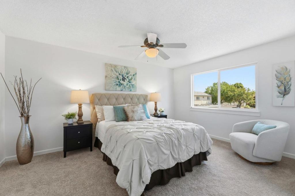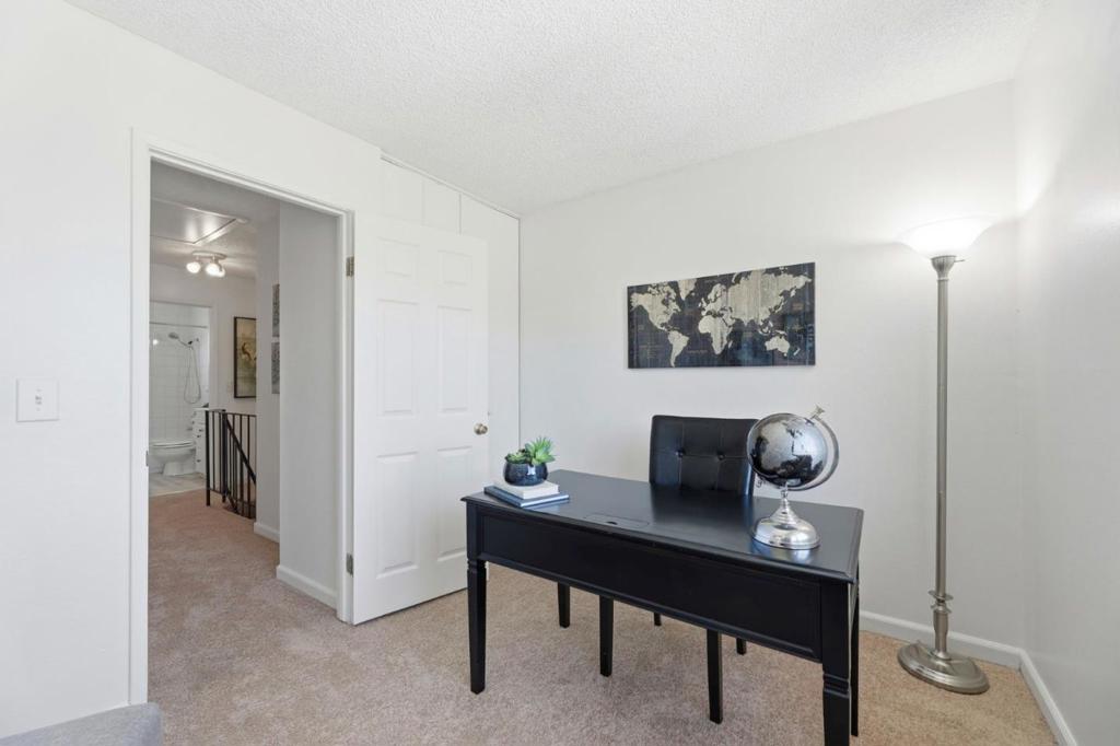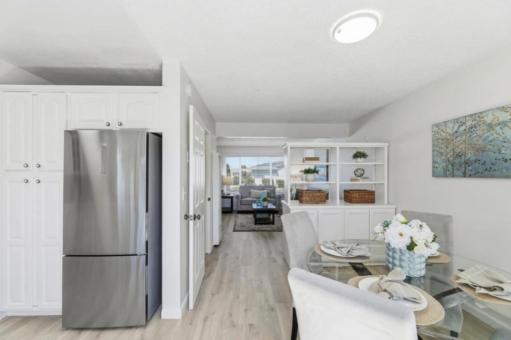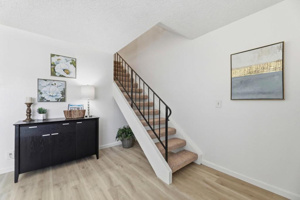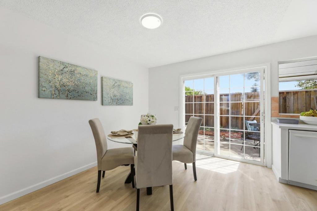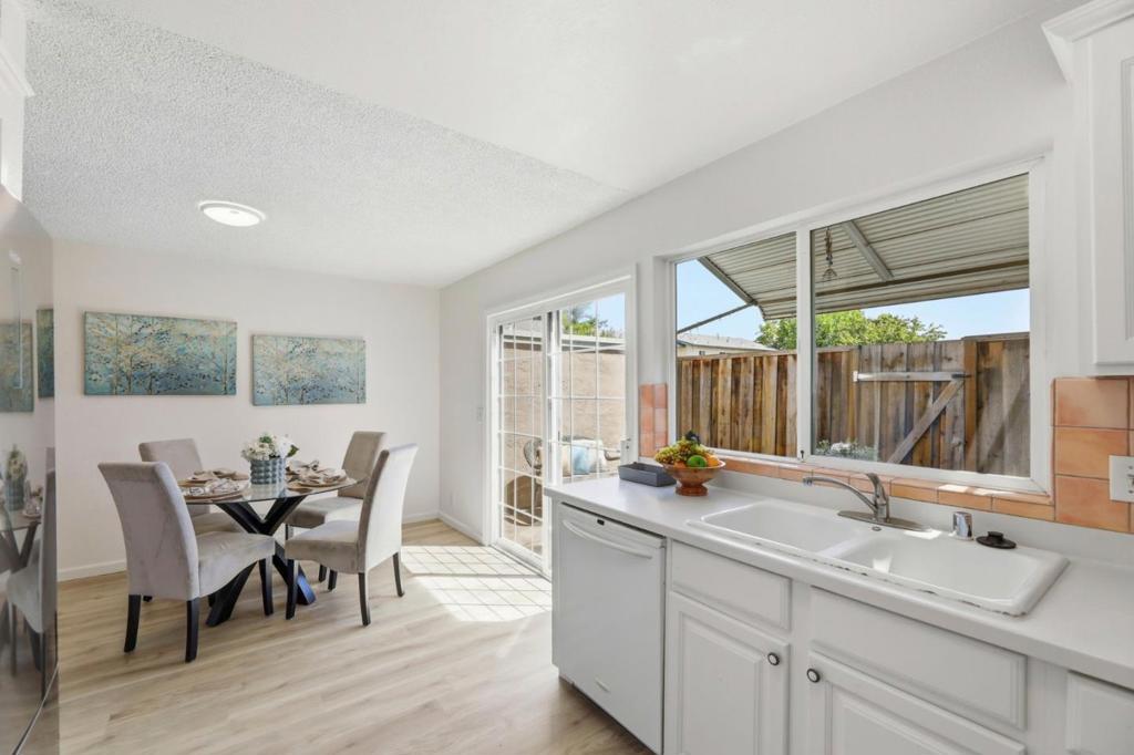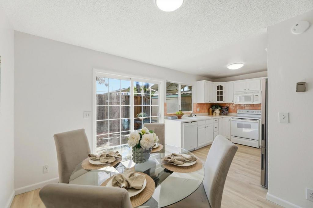 Superb location in this highly sought after townhome complex in Milpitas! Walk to neighborhood park! Ample street parking available in front of unit! Sinnott elementary, Milpitas top elementary school....also walking distance...and no crossing any busy streets!! This is a delightful move in ready property! Bright and airy! All fresh paint inside! Brand new high grade LVP laminate flooring downstairs! Brand new carpeting in bedrooms upstairs!! Windows are upgraded!! Tile floors in downstairs bath and laundry room! Inside laundry room area!! Washer, dryer and refrigerator included in sale! Quartz counters in kitchen! 6- panel interior doors! Hot water heated updated! Attic storage! Double closets in spacious master bedroom! Private patio, with access to parking area! Open Sat 4/18 11:30am-1;30pm! and Sunday 4/19 2:00pm-4:00pm!!Lowest priced townhome in Milpitas!!