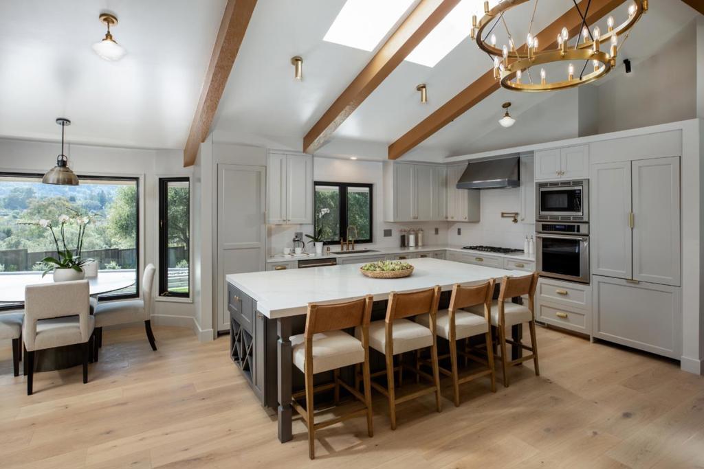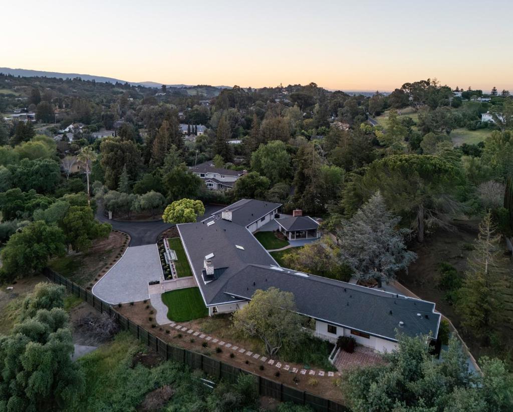 This architectural residence has been meticulously reimagined w/ a high-end renovation. Showcasing a refined material palette of limestone, antique whitewashed brick, board-and-batten siding, the home blends classic character w/ contemporary sophistication. Its distinctive horseshoe configuration captures sweeping valley & Santa Cruz Mountain views, creating a rare sense of privacy & retreat. Inside light-filled interiors feature open, flowing spaces designed to seamlessly connect indoor & outdoor living. A linear layout enhances sightlines & draws the eye to the surrounding landscape, while expansive windows frame picturesque vistas throughout. One wing is dedicated to inviting gathering spaces ideal for entertaining, while the opposite wing offers serene en-suite retreats designed for comfort & seclusion. Gracefully set into the hillside, Doris Villa embodies a balance of grounded elegance & airy openness-an extraordinary offering for those who appreciate thoughtful design, natural beauty & refined living. End of a lane atop a knoll w/ mature trees. Outdoor grounds w/ waterfall fountains, cabana & fully enclosed entertaining spaces. Bonus junior ADU w/ a bath adds versatile living options & privacy. Quiet interior spaces & a peaceful backyard setting, best appreciated in person
