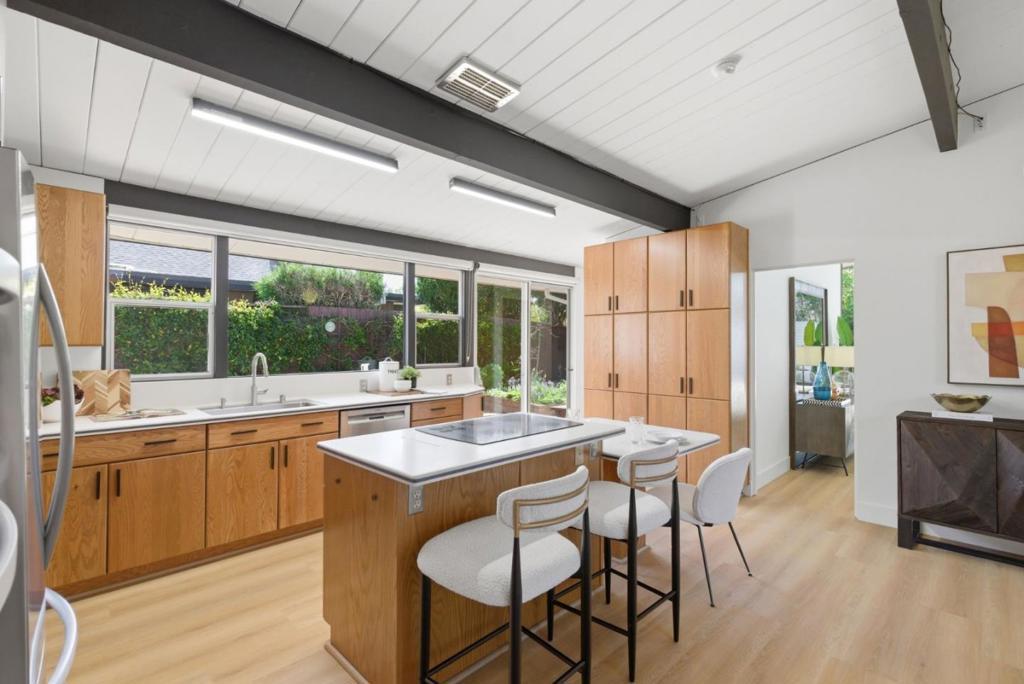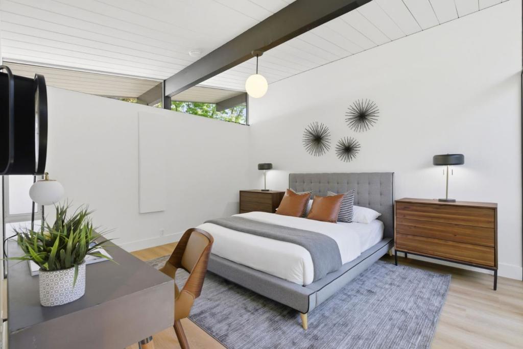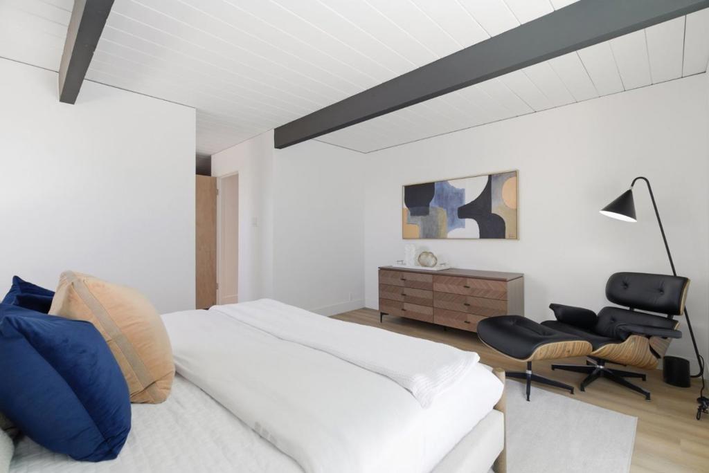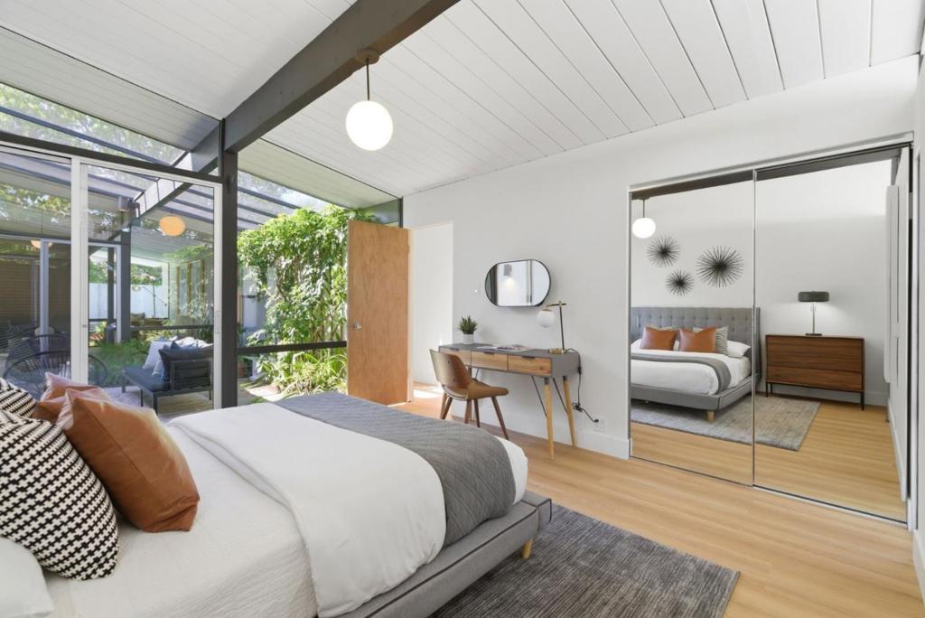 Original Joseph Eichler / Original Owner Debut tucked on a quiet street in coveted Serra Park, this mint-condition Eichler honors everything mid-century modern lovers crave: huge lot, clean lines, radiant flrs, walls of glass & signature open-air atrium blurring indoor/outdoor living. Claude Oakland designed home features post-&-beam architecture, tongue-&-groove ceilings w/exposed beams, iconic globe lighting & original brick fireplace. Fresh int/ext paint, new wide-plank flrs & updated baths, new double pane windows & 8 yr new roof blend preserved elements w/modern comfort. Light-filled living rm, sep dining & chef-inspired kitchen w/center island, pantry, generous storage & adj laundry for full-size W/D. Flexible bonus/office rooms, primary suite w/cedar-lined walk-in, yard access & spa-inspired bath w/new stone cntrs, updated vanity, backlit mirror, designer lights & frameless glass shower. Outdoor pool oasis w/electric auto cover, built-in spa, privacy fencing, mature fruit trees & curated landscaping perfect for entertaining. 2-car garage, expansive patios enhance seamless in/outdoor flow. Top-rated West Valley Elem & Homestead High, mins to DT, Caltrain & ~4 mi to Apple Park. Rare opportunity to own a preserved, thoughtfully updated Eichler w/ timeless mid-century appeal.
