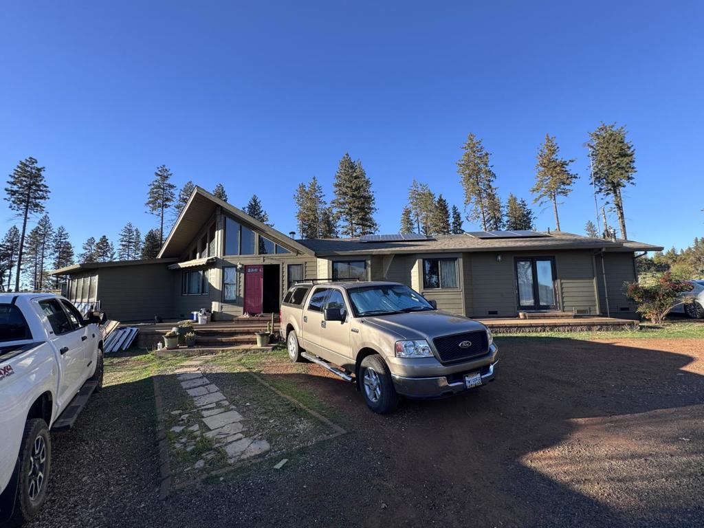 Welcome to this 3-bedroom, 2-bathroom home in Oroville offering 1,702 square feet of living space. The kitchen opens to the family room, creating a comfortable layout for everyday living. The dining area includes space for casual meals and gatherings. The home features a spacious living room with vaulted wood ceilings, large windows for natural light, and a wood stove on a stone hearth. The kitchen includes ample cabinetry and a central island. The bathroom offers a double-sink vanity with a skylight above for added light. This unique mountain property includes 10.51 flat, usable acres across three parcels with two additional APNs, offering potential for expansion, another home, or an ADU. The land is suitable for gardens, orchards, farming, and livestock. The property operates off-grid with solar panels, coolers, and a Kohler generator system. Propane heating provides comfort during cooler months. Additional improvements include a greenhouse, workshop, shed, and outbuildings. Additional parcels include 1220 Granite Ridge Rd (4.77 acres, APN 058-190-070-000) and a 2.87-acre parcel with no assigned address (APN 058-190-111-000). Located in the Golden Feather Union Elementary School District. Buyers to verify lot size, zoning, permits, and development options with Butte County.