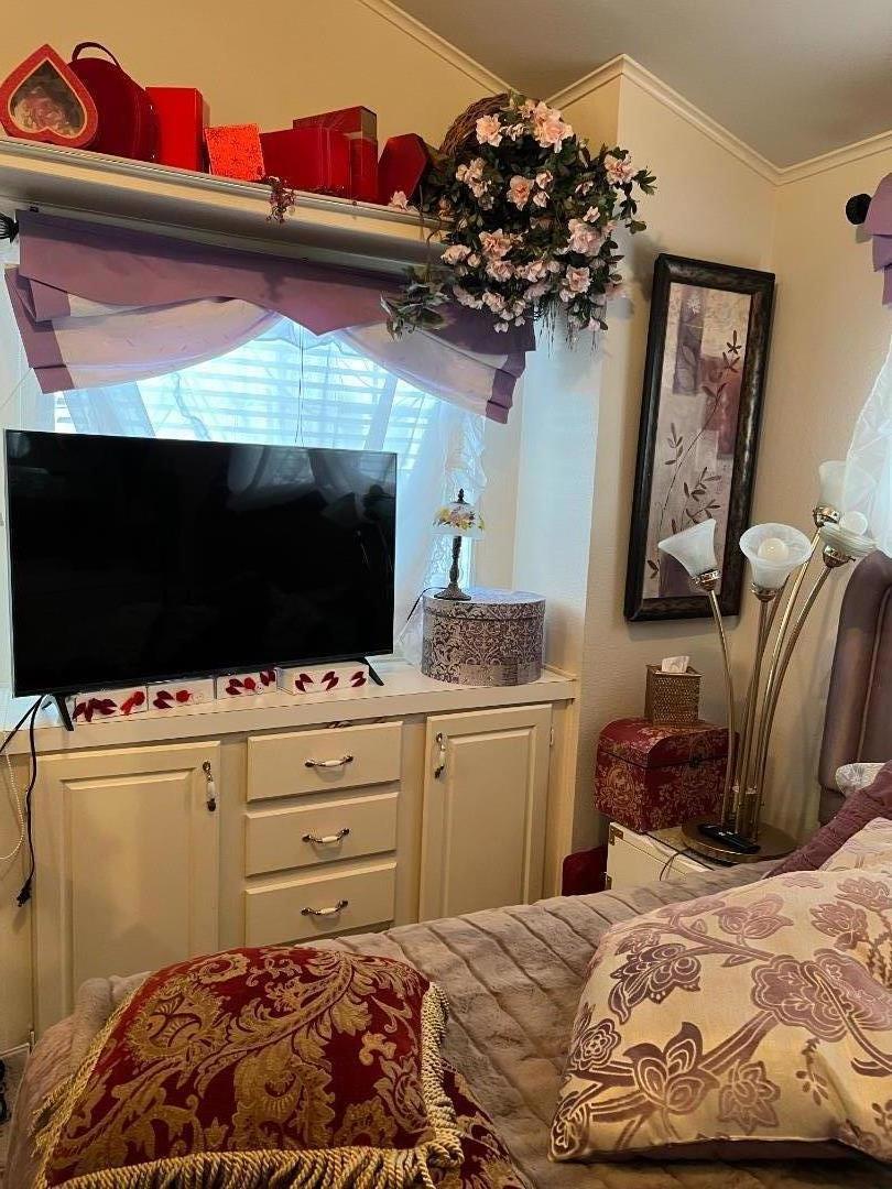 ADORABLE!! Welcome to a charming and cozy residence in the city of Marina. This home located in a well cared for senior park and offers a comfortable living space with 399 square feet, perfect for those seeking simplicity and efficiency. The kitchen is well-equipped with a gas oven, pantry cabinet, and refrigerator. The dining area provides a lovely space for meals. The home includes one bedroom with mirrored closet doors and lots of storage space.The full bathroom features a convenient stall shower. New water heater installed 2022 and brand new composition roof this year. this home offers an excellent opportunity to be part of a vibrant community. Discover the potential of this delightful Marina property. Ample space in the yard for gardening and/or a private space to lounge with your fur baby.