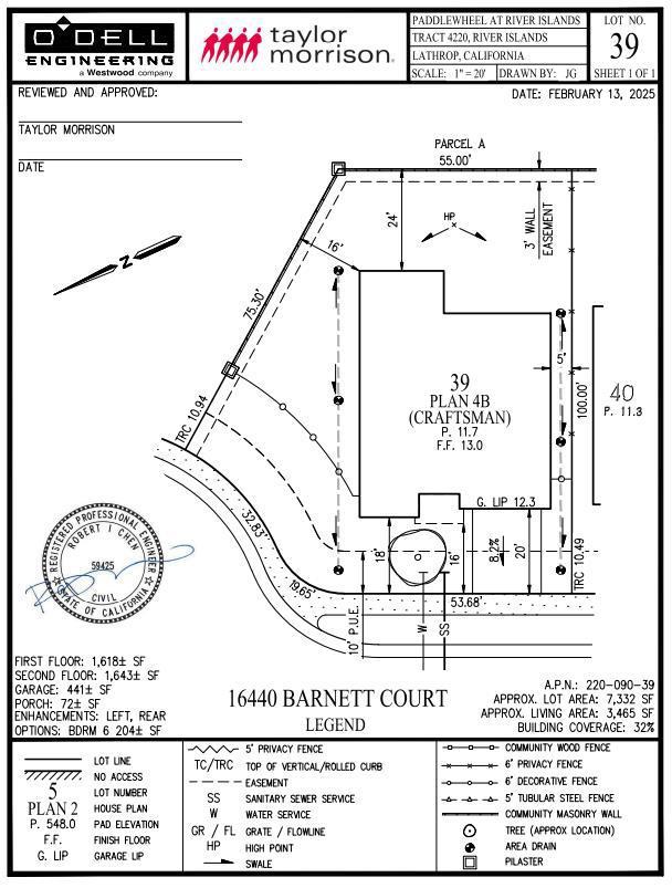 What's Special: Cul-de-Sac Lot | Oversized Lot | No Rear Neighbors | Flex Room. New Construction - August Completion! Built by Taylor Morrison, America's Most Trusted Home Builder. Welcome to the Luna at 16440 Barnett Court in Paddlewheel at River Islands! Modern yet wonderfully welcoming, this home greets you with a charming porch that leads into an inviting foyer. Just inside, a cozy secondary bedroom with a shared full bath sits alongside a flexible room that is ready to be personalized. A convenient powder room and garage entry are close by for everyday ease. The heart of the home opens to bright and airy living with a great room that flows into casual dining and a spacious kitchen with a lovely island, while an additional bedroom with its own bath rests just behind the kitchen for visiting guests. Upstairs, three comfortable bedrooms share the space with a full bath, a cheerful laundry room, a tech area and a friendly loft ideal for relaxing game nights. Tucked away, the serene primary suite offers a spa-like bath and a generous walk-in closet, creating the perfect place to unwind and feel at home. Additional Highlights Include: Bedroom 6 with bath 4 in place of tandem garage, 8' interior doors, and interior door at primary bed to bath. MLS#ML82037337