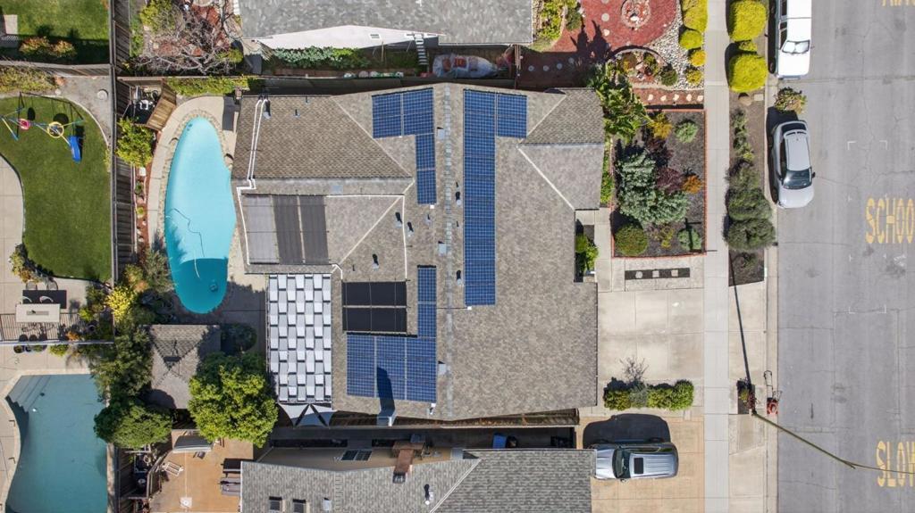 Pride of ownership shines in this beautifully maintained single-story 4 bed/2 bath home on a quiet, private street in desirable Blossom Valley. The bright living room features a charming bay window, and custom Levolor zebra roller shades. The generous kitchen features a stunning tray ceiling with recessed lights, granite countertops, stainless steel appliances, and a built-in wine cooler. Retreat to the oversized master bedroom, a true sanctuary. Hall bathroom fully updated with modern finishes; master bathroom freshly refreshed. Hardwood, laminate, and carpet flooring with dual-pane windows throughout. Fresh interior paint and smooth ceilings create a bright, move-in ready feel. Private backyard oasis featuring a sparkling pool with owned solar panels and a charming gazebo, perfect for California living. Additional leased home solar helps reduce energy costs. Two EV outlets (240V & 12A), Nest smart thermostat, central AC and heating, water softener, new electric panel, and smartphone-enabled garage door. Home maintained under seller home warranty. Near Almaden Lake Park, Oakridge Mall, trails, and hospital. Top-rated Sakamoto Elementary, Herman Middle & Santa Teresa High. Don't miss this gem!
