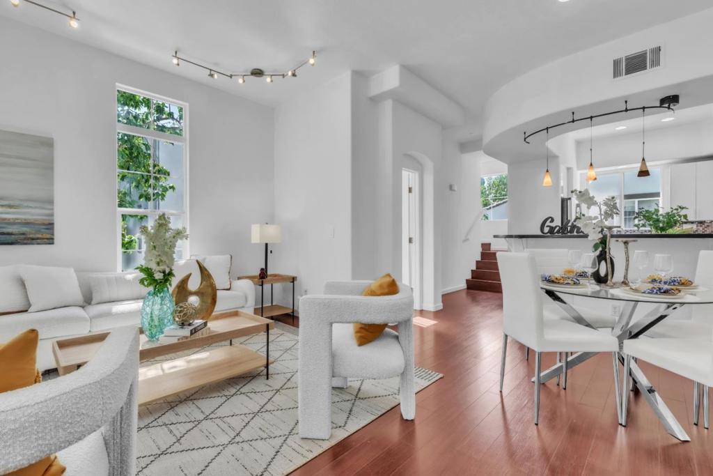 Updated corner-unit townhome in one of the Parc Metro communitys premier locations! This light-filled home features a bright, open main level with an updated kitchen showcasing stainless steel appliances, and a spacious living room with soaring ceilings and large windows. The ground floor offers a private bedroom with access to a backyard patioideal for guests, a home office, or multigenerational living. Upstairs, youll find two en-suite bedrooms, providing comfort and privacy. Additional highlights include dual-pane windows, fresh interior paint, laminate flooring throughout, and an attached two-car garage. Located near top-rated schools with easy access to restaurants, Great Mall, major tech companies, and freeways, this home combines style, functionality, and convenience.