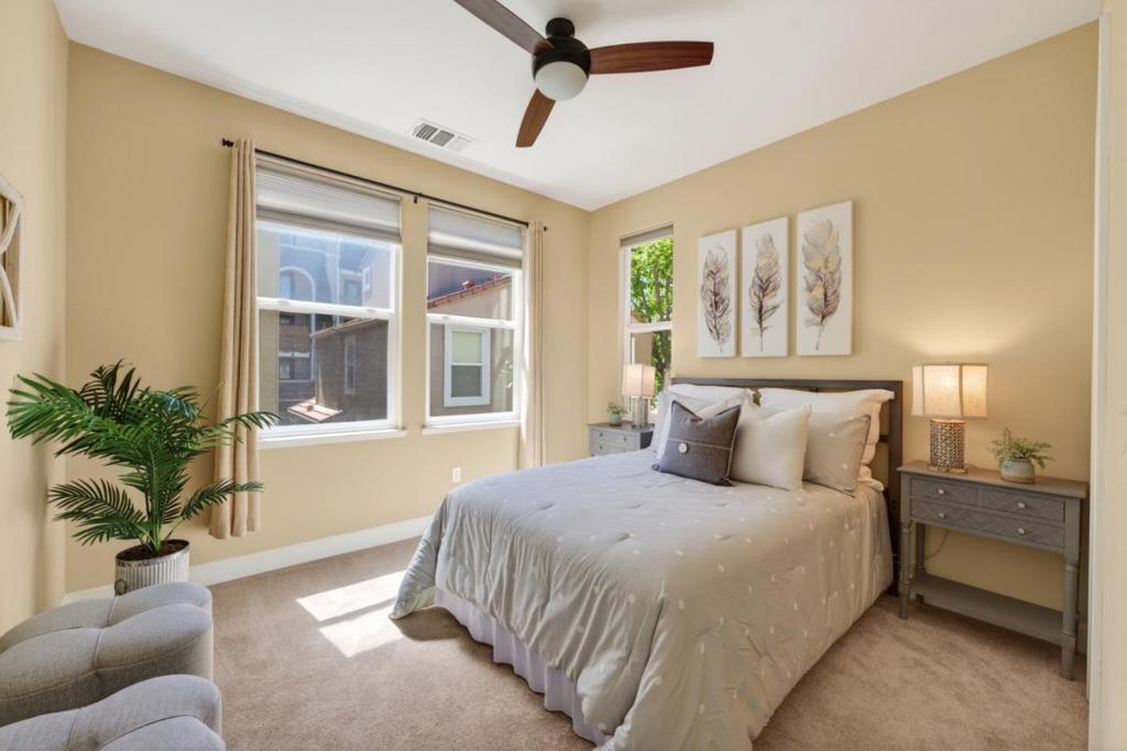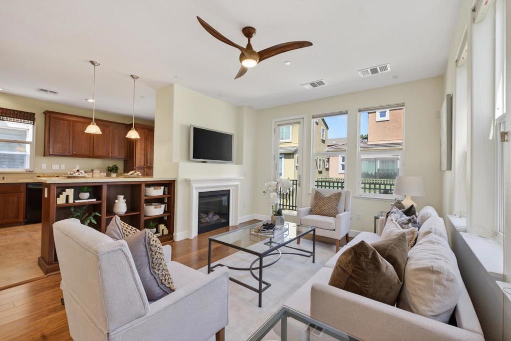 Wonderful opportunity with this fantastic Santa Clara home! This newer construction residence offers 4 bedrooms and 4 bathrooms, combining modern comfort with an unbeatable commute location. Features include high ceilings, recessed lighting, hardwood flooring and a cozy gas fireplace in the living room. Thoughtfully designed with an excellent floor plan, the home includes a spacious downstairs ensuite with a separate entry and backyard access ideal for an in-law suite, guest quarters, home office/business, rental income opportunity, or potential ADU. The spacious kitchen is equipped with newer appliances, ample cabinetry, and quartz countertops, while abundant windows fill the home with natural light. Additional highlights include low HOA dues, a 2-car garage, and a well-designed layout featuring a top-floor primary suite with a double vanity, walk-in closet, large shower, as well as a middle-floor guest bedroom, full bath, and laundry room. Enjoy year-round comfort with central A/C, and take advantage of two separate entrances leading to a private outdoor patio deck perfect for entertaining or relaxing. Ideally located just minutes from Apple Park, NVIDIA, and other major tech campuses. Don't miss this amazing opportunity!!