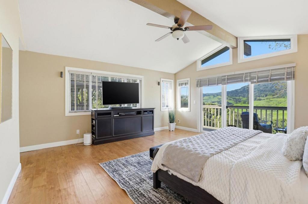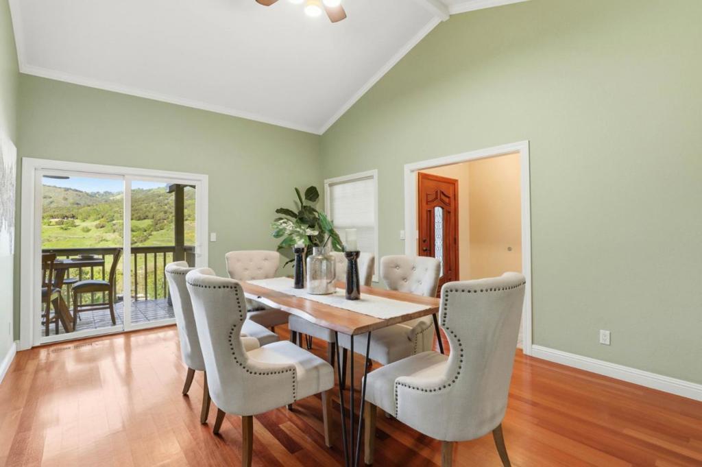 Welcome to your dream home in the highly sought after Holiday Lake Estates neighborhood! With stunning views of the hills, privacy, and a bonus living space perfect for in-laws, guests, or extended family. This expansive 5-bedroom, 3,564 sq ft residence offers a luxurious lifestyle on a large lot size of 20,000 sq ft. The exquisite kitchen is a culinary delight, featuring granite countertops, a gas cooktop, built-in oven, exhaust fan, wine refrigerator, and an island, perfect for entertaining. With office space for anyone looking to work from home. Enjoy cozy evenings by the fireplace and marvel at the diverse flooring options, including hardwood floors. The home boasts an array of amenities with open beam ceilings, garden windows, high ceilings, and skylights, enhancing its elegance. The dining options are versatile, with a breakfast bar, and a formal dining room. The primary suite includes a retreat with a walk-in closet and a bathroom with double sinks and a tub with jets. A spacious laundry area adds convenience, and the property is located within the Morgan Hill's award winning school district. With three garage spaces, this home is a perfect blend of style and functionality.