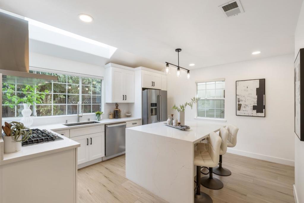 Welcome to this exceptional Mountain View property that offers the spaciousness and feel of a single-family home, making your dream a reality! Step inside and be impressed by the top-of-the-line upgrades throughout, from the beautiful wide plank flooring and updated lighting to the stunning professional-grade kitchen featuring a 36-inch cooktop, built-in Bosch stainless-steel appliances, and ample storage -- a true haven for culinary enthusiasts. Enjoy effortless indoor/outdoor living with a seamless transition to the large backyard with stamped concrete and mature landscaping, perfect for relaxing and entertaining. Upstairs, you'll find tastefully updated bathrooms, three generously sized bedrooms including a master suite with a walk-in closet, high ceilings, and a bright, flexible office/loft area. Nestled in the heart of Mountain View, this home offers an unbeatable combination of location and quality, allowing you to embrace the lifestyle you've been searching for. Great schools including: Theuerkauf Elementary, Crittenden Middle and Los Altos High.